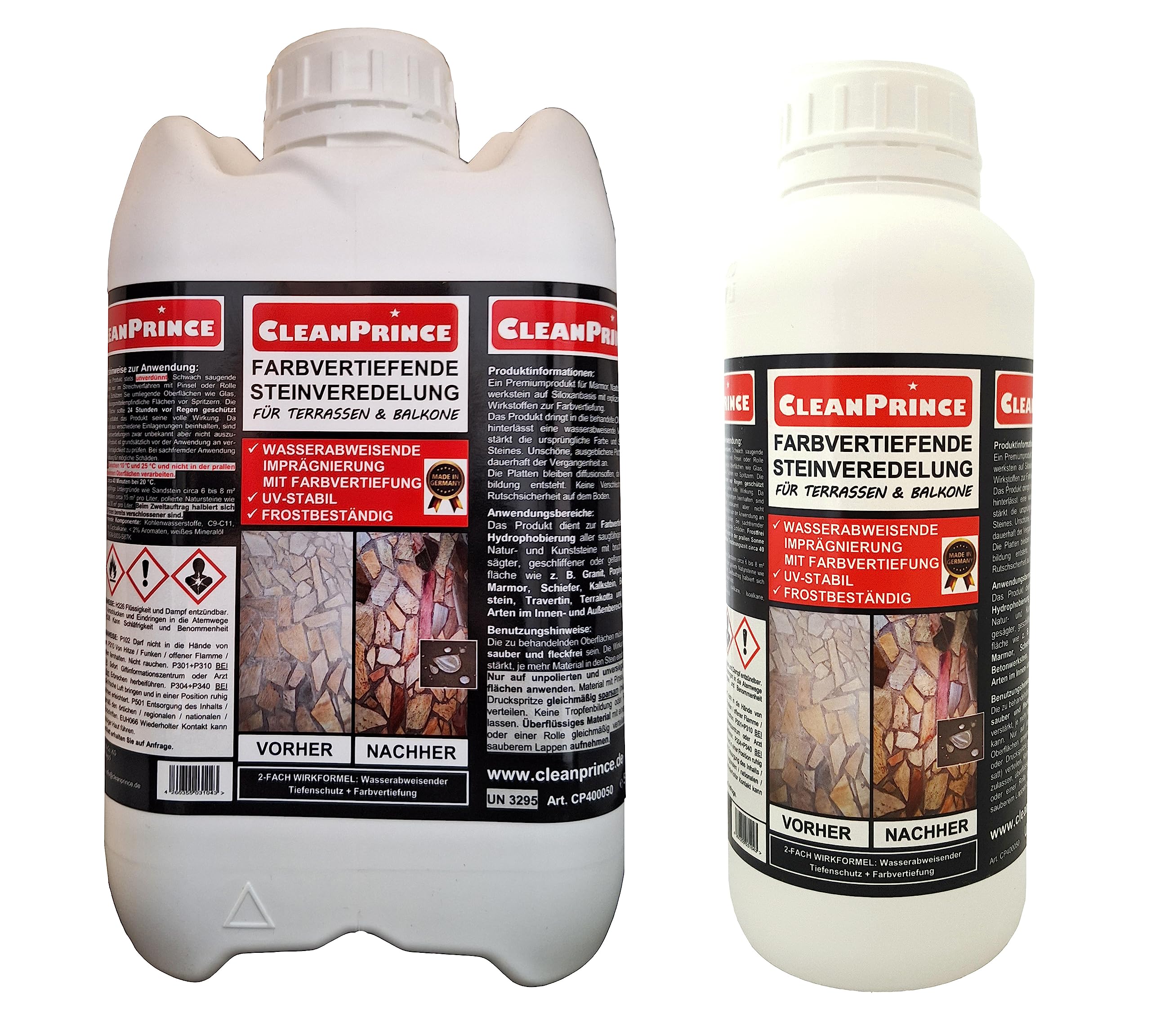 Cleanprince 5 1 6 Liter Color Intensifier Treatment for Stone Terraces and Balconies Intensifier Impregnation Impregnate Anti-Grease Coat Oil Dirt Stain Remover Stop Natural Marble - UV stable - frost resistant - water resistant, color deepeningWater resistant, color deepening. Frost resistant. UV stable. Cleanprince 5 1 6 Litre Intensifieur de Couleur Traitement pour Pierres Terrasses et Balcons Intensificateur Imprégnation Imprégner Couche Anti Graisse Huile Saleté Détachant Arrêt Marbre Naturelle - Stable aux UV - résistant au gel - résistant à l'eau, couleur approfondissementrésistant à l'eau, couleur approfondissement. résistant au gel. Stable aux UV.