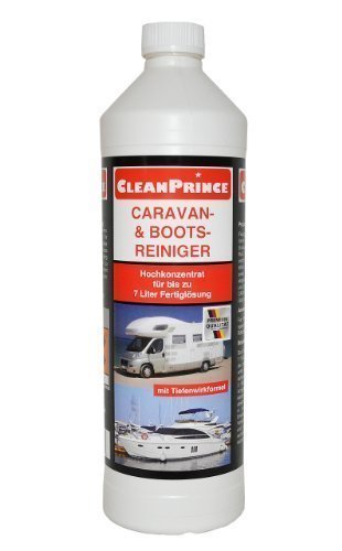 Cleanprince Caravan and Boot Cleaner 1 Litre Caravan Camping Tent Boats - Concentrate up to 7 litres of ready solution Gentle removal of black rain streaks, gilt, rubber streaks etc. with a deep-knitting formulaConcentrated up to 7 liters of ready solution Gentle removal of black rain streaks, gilt, rubber streaks, etc. with a deep-knitting formula. Cleanprince Caravanriniger et Bootreiniger 1 Litre Caravane Camping Tente Bateaux - Concentré jusqu'à 7 litres de solution prête Élimination en douceur des rayures noires de la pluie, du gilb, des stries de caoutchouc, etc. avec une formule à tricoter en profondeurConcentré jusqu'à 7 litres de solution prête Élimination en douceur des rayures noires de la pluie, du gilb, des stries de caoutchouc, etc. avec une formule à tricoter en profondeur.