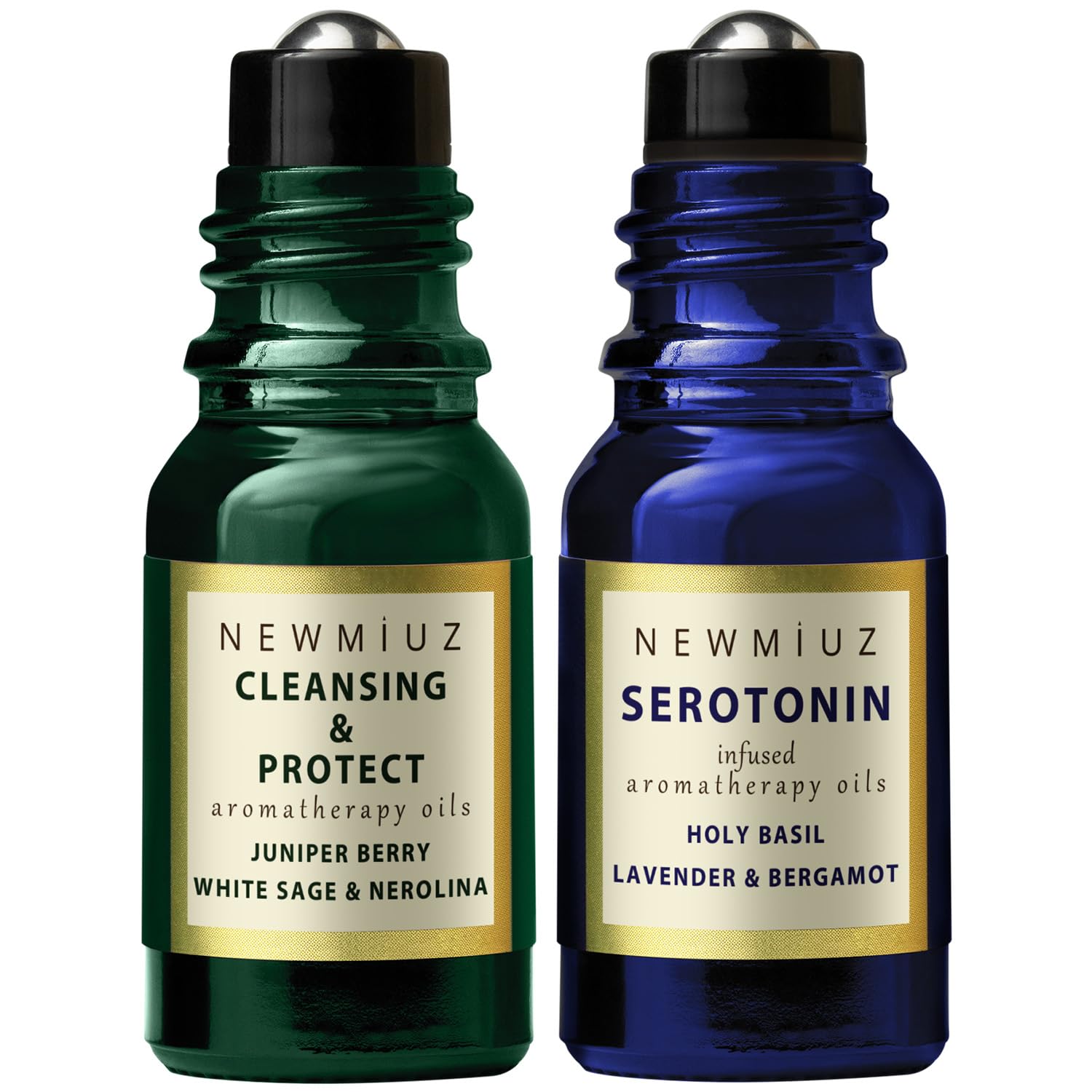 Cleansing and Protect Juniper Berry White Sage with Nerolina & Anti Stress Holy Basil Lavender and Bergamot Essential Oil Roller Blends Pack of 2
