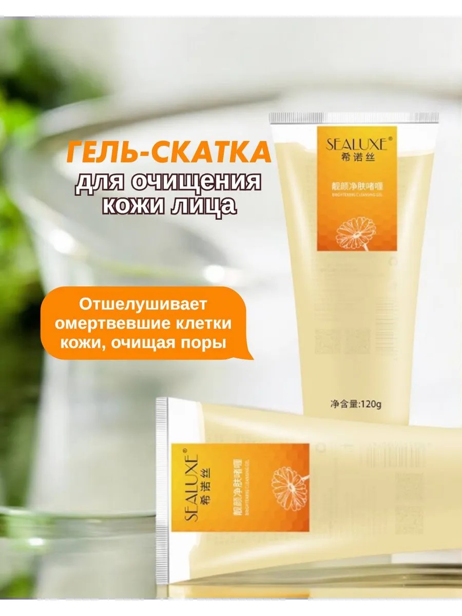 SEALUXE 120 г Очищающее желе скатка улучшающая цвет лица Скатка — это косметический продукт для ухода за кожей, основной особенностью которого является его текстура. Она напоминает гель или желе, при нанесении на кожу она пленку. После того как продукт начинает сохнуть, он начинает скатываться, образуя маленькие комочки. Это и есть основной принцип работы скатки: в процессе скатывания она захватывает с собой мертвые клетки кожи, остатки косметики и другие загрязнения с поверхности кожи.