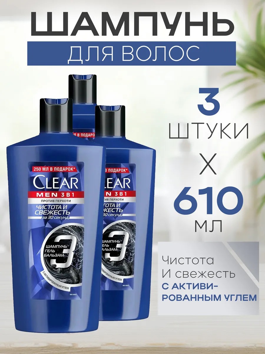 clear Набор из 3 штук Шампунь 3в1 MEN Чистота и свежесть 610мл