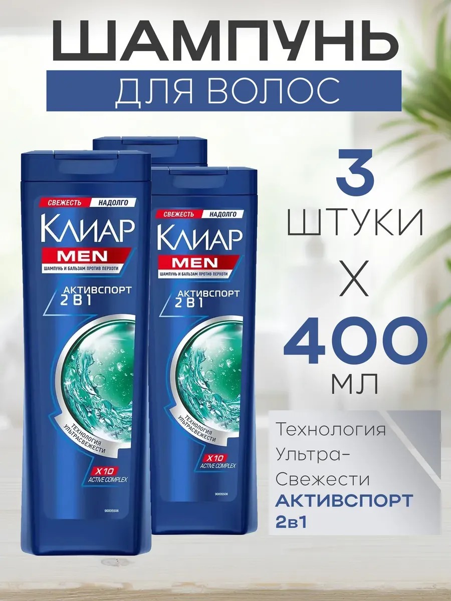 clear Набор из 3 штук Шампунь-бальзам 2в1 MEN Активспорт 400мл