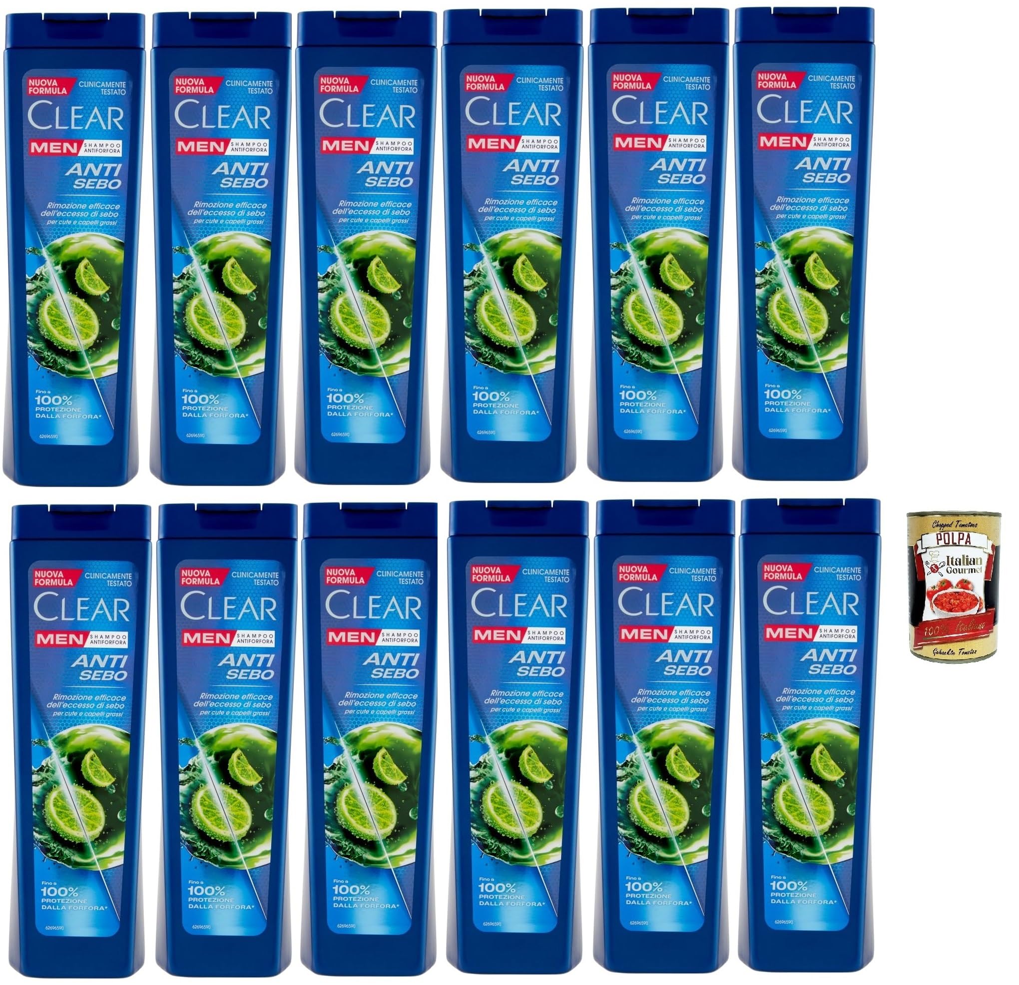 Clear ANTI SEBO Men Shampoo for hair and oily scalp antisebum shampoo 12 x 225 ml + Italian Gourmet polpa 400 g