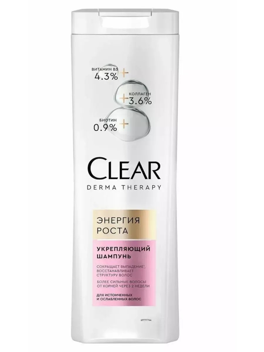 Clear derma therapy шампунь против выпадения энергия роста 380мл. Из-за постоянных стрессов и высокого темпа жизни наши волосы могут стать ломкими и тусклыми, склонными к выпадению. Эксперты Clear разработали новую серию продуктов Clear Derma Therapy – система ухода для восстановления баланса кожи головы и силы волос от корней до кончиков. В основе Clear Derma Therapy подход скинификации – умный уход не только за волосами, но и кожей головы. Ведь волосы не могут выглядеть здоровыми, если есть проблемы с кожей головы. Второй шаг на пути к ухоженным волосам – укрепляющий шампунь Энергия роста. Его формула содержит 3.6% коллагена'' и 0.9% биотина'', укрепляет волосы по всей длине. 4.3% Витамина В3'' в составе сокращает выпадение', восстанавливая структуру волос. Объем 380 мл прослужит долго, нежный уходовый аромат приятен во время использования. Состав: aqua, sodium laureth sulfate, cocamidopropyl betaine, dimethiconol, parfum, sodium chloride, biotin, glycerin, helianthus annuus (sunflower) seed oil, hydrolyzed collagen, niacinamide, piroctone olamine, zinc sulfate, carbomer, citric acid,guar hydroxypropyltrimonium chloride, mica, phenoxyethanol, ppg-8, sodium benzoate, sodium hydroxide, sodium salicylate, tea-dodecylbenzenesulfonate, benzyl salicylate, linalool, ci 17200, ci 60730, ci 77891