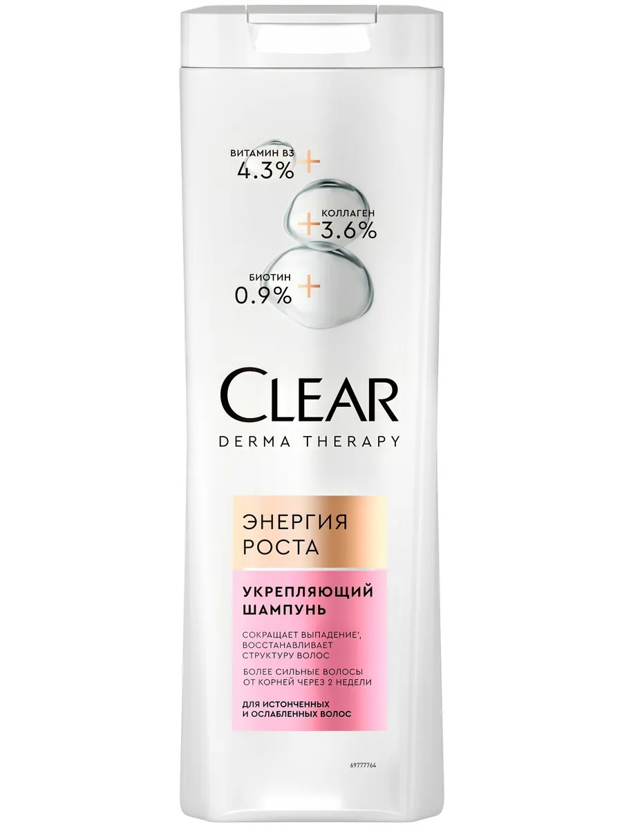 clear Шампунь Derma therapy Энергия роста, от выпадения, 380 мл