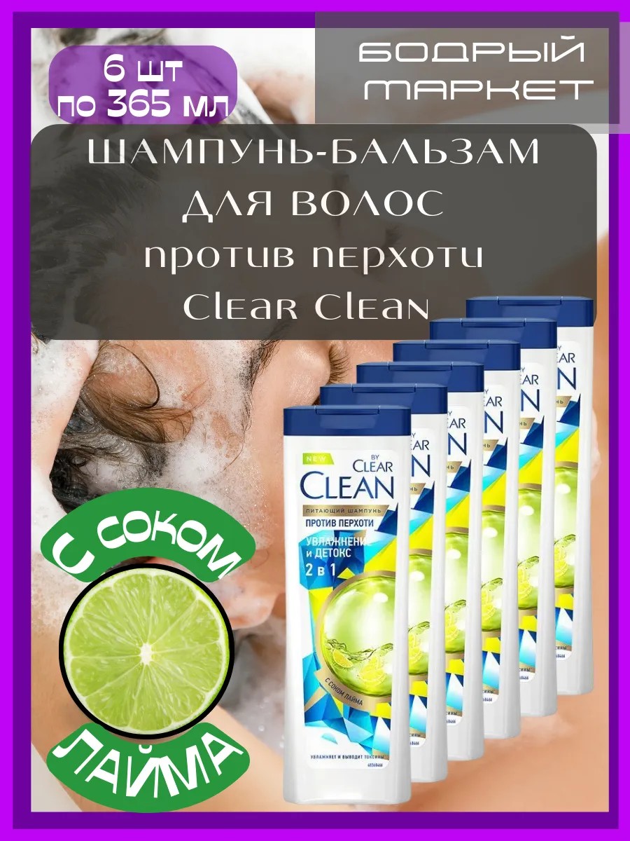 clear Питающий шампунь - бальзам Увлажнение и Детокс 365мл 6шт
