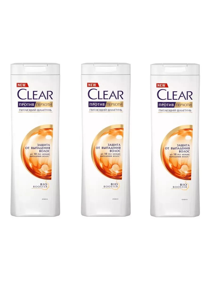 clear Шампунь против перхоти Защита от выпадения, 400 мл, 3 шт
