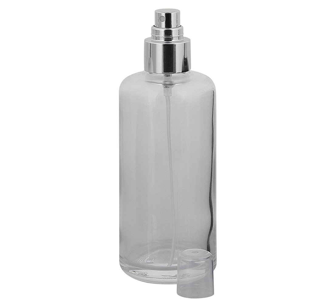 Klarglas, Zerstäuber-Flasche, m. silbernem Pumpzerstäuber Kosmetex Glas-Flasche, Flakon, leer, 1× 200 ml Klarglas