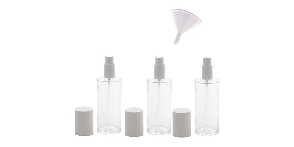 Klarglasflasche mit Zerstäuber und Kappe, Leerer Kosmetex Flakon, Glasflasche 100ml - mit 1x Trichter, 3 Stück-1 Trichter