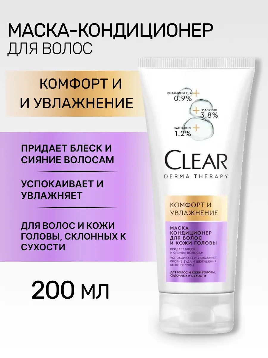 | Полное наименование товара | Маска-кондиционер для волос и кожи головы Клиар Derma Therapy Комфорт и увлажнение |
