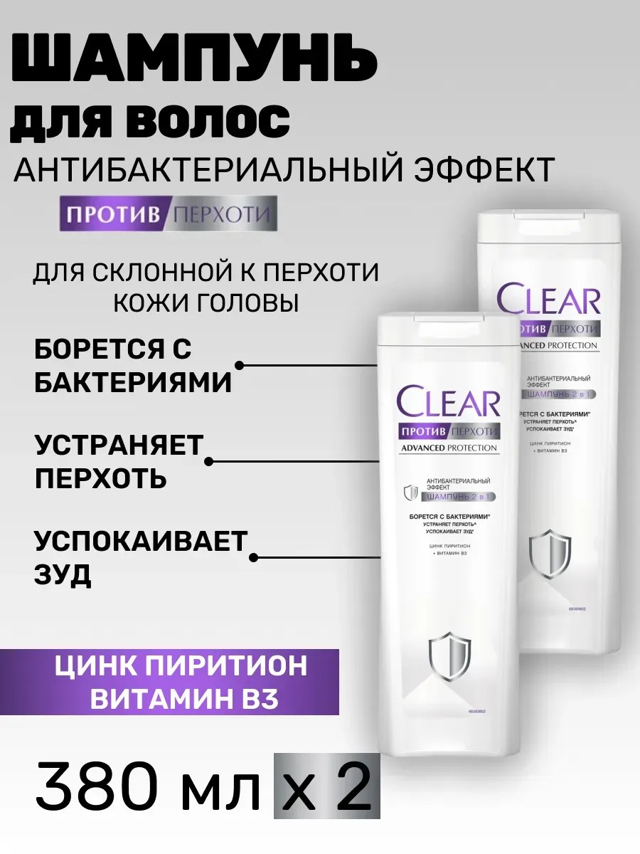 clear Шампунь для волос против перхоти 380 мл, 2 шт