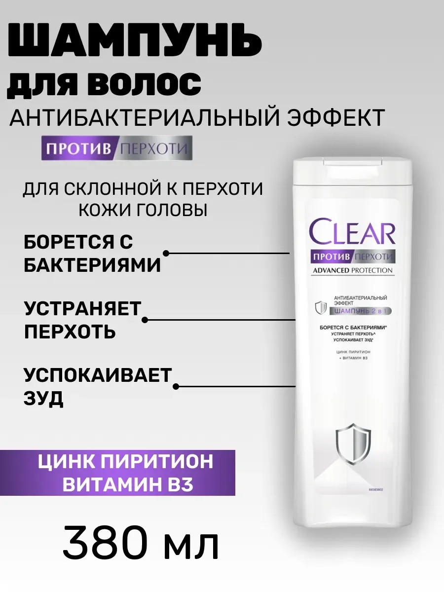 clear Шампунь для волос против перхоти Антибактериальный 380 мл