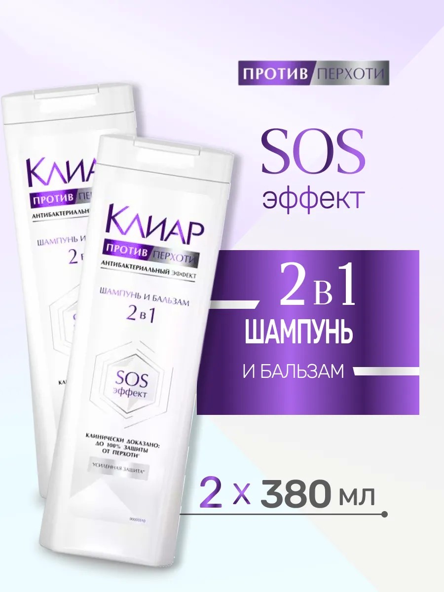 clear Шампунь для волос Антибактериальный против перхоти 2 шт