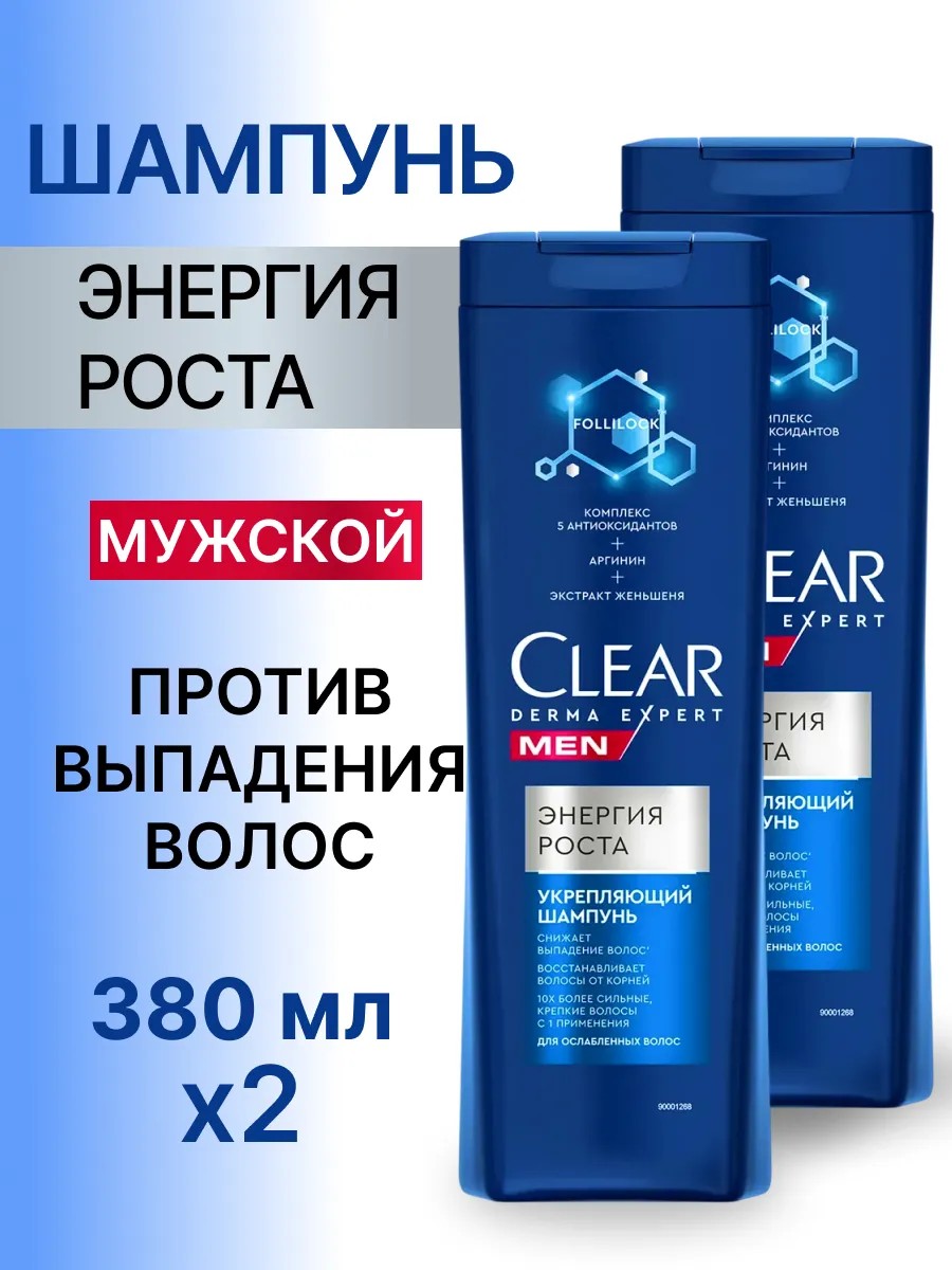 clear Шампунь для волос мужской Энергия роста, 380 мл, 2 шт