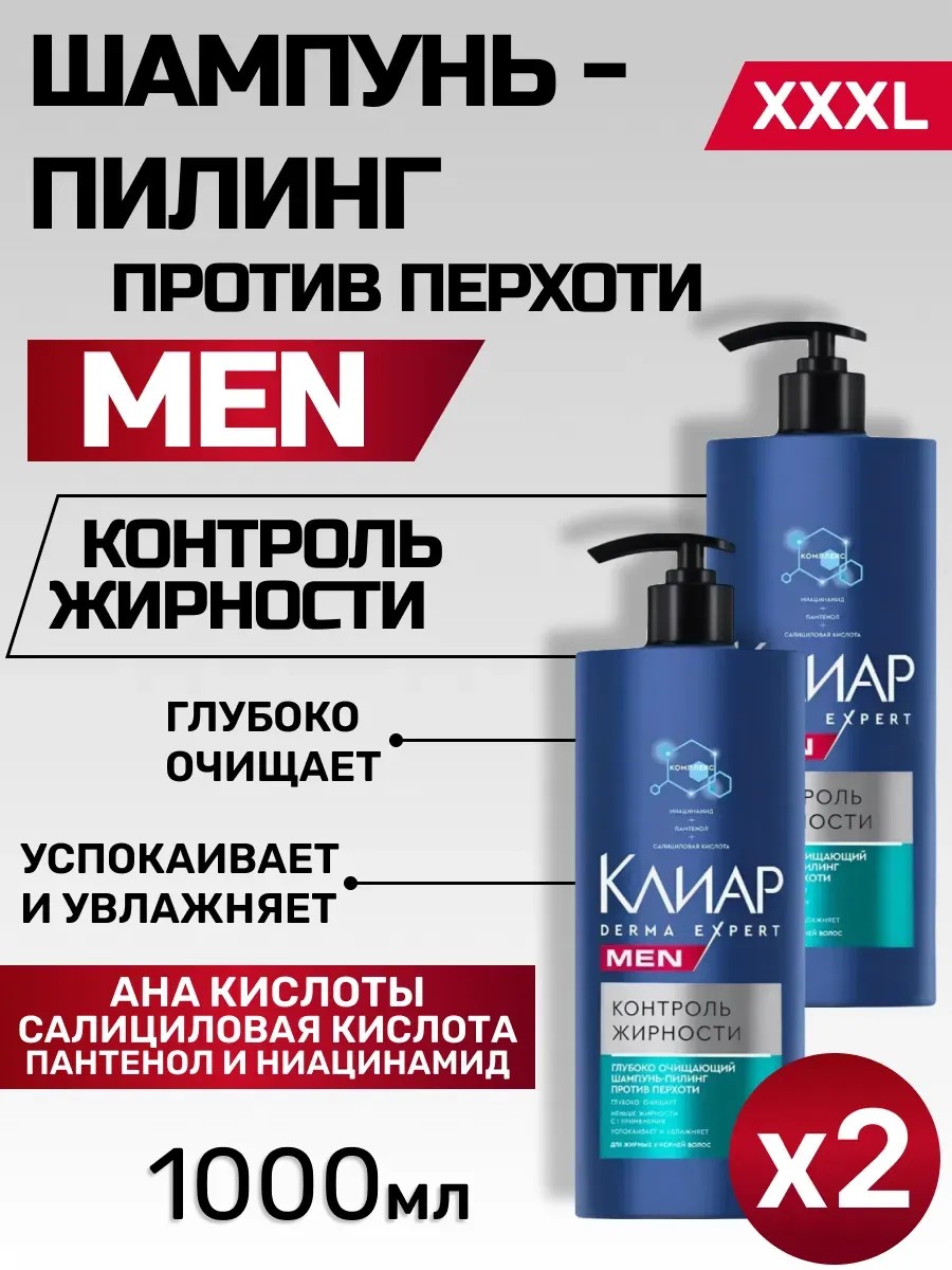 | Комплектация | Шампунь для волос мужской Контроль Жирности 1000 мл, 2 шт |