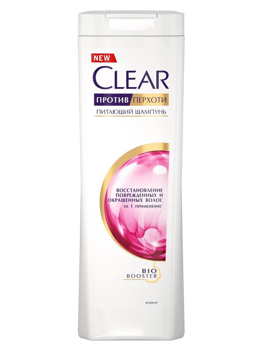 CLEAR Repair for Damaged Colored Hair deeply nourishes the scalp, protects against dandruff, and restores damaged hair, helping to restore strength and smoothness. A fruity scent with heart notes of rose, violet, and jasmine is complemented by ripe apple, juicy blackberry, raspberry, and redcurrant, and a trail of sensual vanilla and white musk. Healthy, dandruff-free hair begins with a healthy scalp. CLEAR not only protects against visible dandruff but also combats the problem at a deeper level. CLEAR experts have developed a triple anti-dandruff technology that effectively combats dandruff, cleanses the scalp, and activates its natural defenses. To improve scalp protection and hydration, in addition to the key anti-dandruff ingredient zinc pyrithione, the updated CLEAR formula includes an amino acid complex. The updated Guar system improves the delivery and deposition of active ingredients and combats Malassezia fungus, the main cause of dandruff. Women's scalps are prone to significant moisture loss. Dandruff is often a result of dry scalp and hair, as well as frequent use of styling products. CLEAR Shampoo for women contains glycine, arginine, and glycerin for enhanced hydration and nourishment to combat the most pressing obstacles to beautiful, healthy, dandruff-free hair. Guaranteed dandruff protection. Eliminates visible dandruff with regular use.