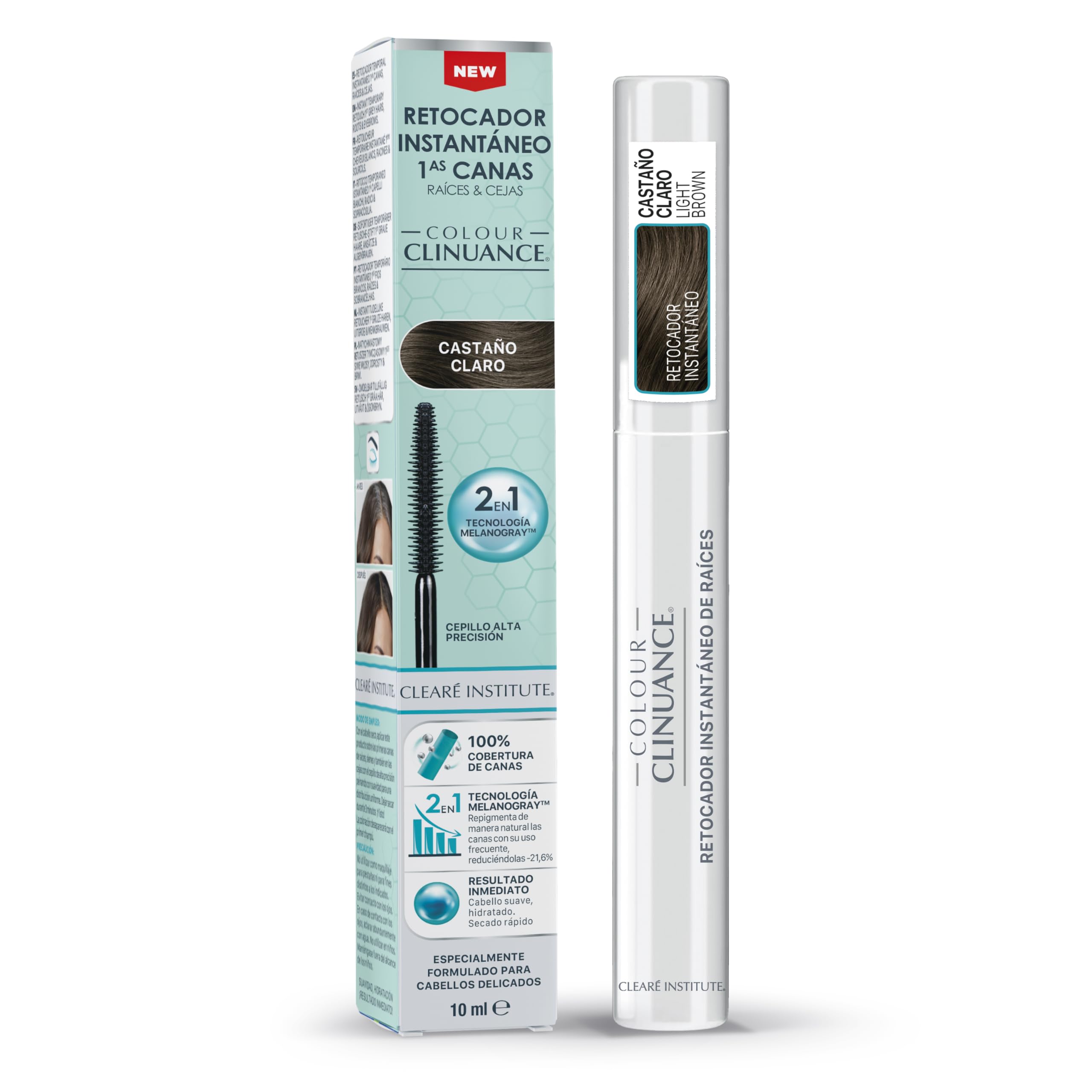 CLEARÉ INSTITUTE Colour Clinuance, Retoucheur Temporaire Instantané pour Premiers Cheveux Gris, Racines et Sourcils, Facile à Utiliser, Couverture Uniforme, Précision Maximale, Châtain Clair, 10 ml