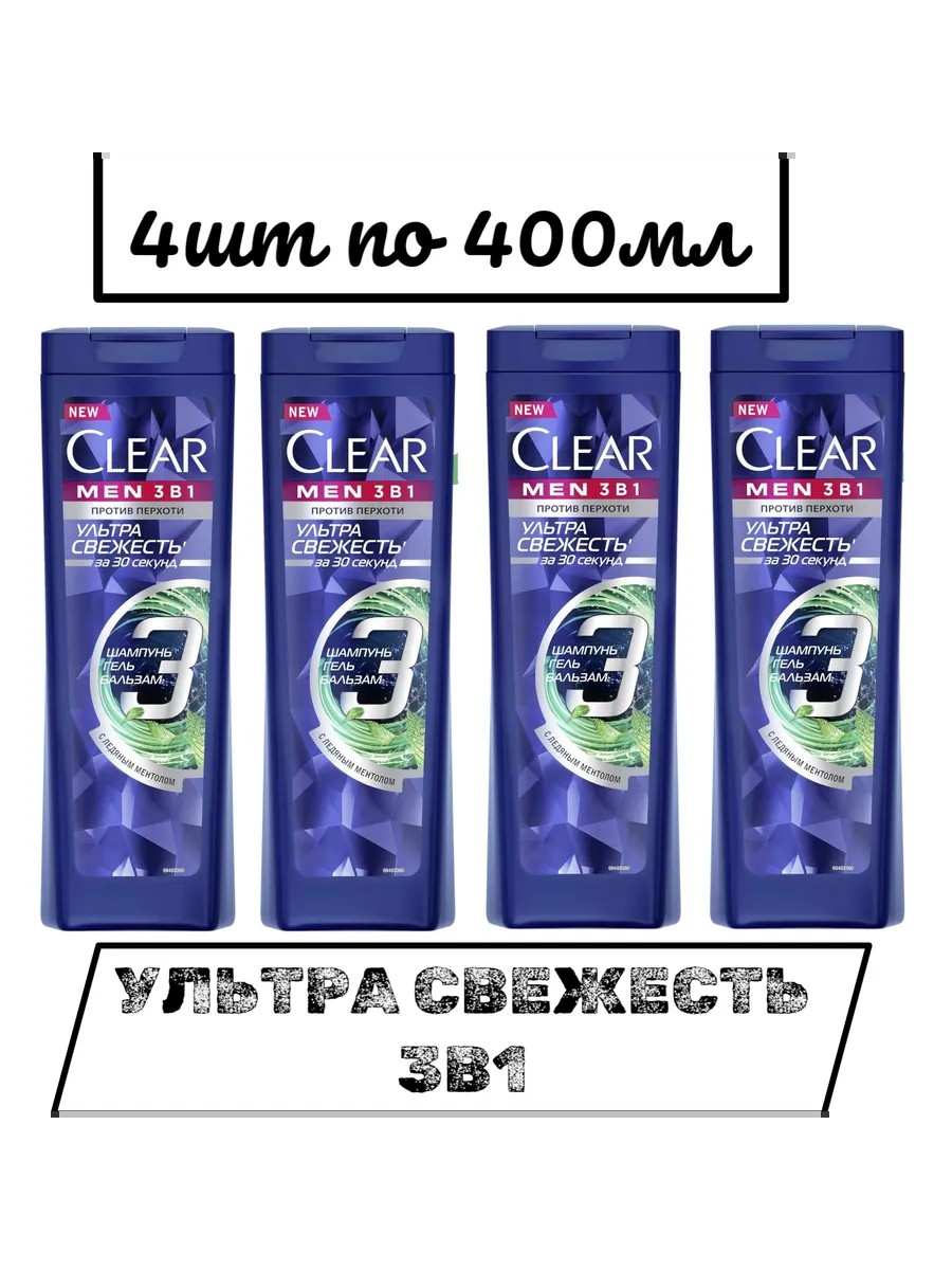 clear Шампунь для волос мужской от перхоти 3в1 4шт по 400мл