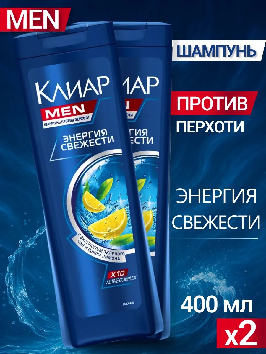 clear Шампунь для волос мужской от перхоти Энергия Свежести, 2 шт