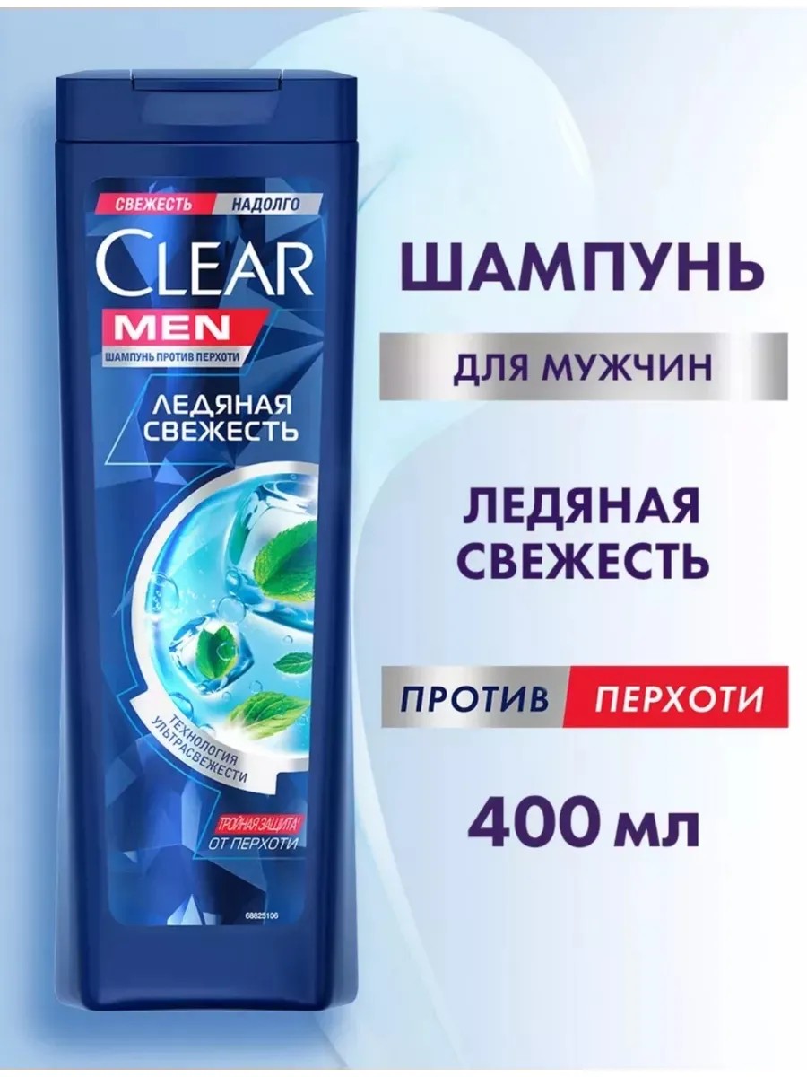 If your hair shampoo can't cope with dandruff and oiliness, try Clear Icy Freshness anti-dandruff shampoo with menthol. It is specially designed for oily scalps. The shampoo formula is based on triple protection against dandruff - cleansing the scalp and hair. Enhanced*** Ultra Freshness technology* and menthol will give you a feeling of cleanliness and freshness for a long time. Thanks to Triple Protection, this men's hair shampoo is effective even against stubborn dandruff**. Specially selected active ingredients fight the cause of dandruff and prevent its recurrence****. Clear Icy Freshness hair shampoo will help get rid of oily hair and dandruff****. The product does not dry out the scalp, providing comfort and well-groomed care. Try also other Clear shampoos and masks-conditioners (balms) and choose the ideal care for yourself. Clear Men shampoo is a great gift for your beloved husband or colleagues. Clear Men product effect: fights the cause of dandruff, protects hair from loss, long-lasting feeling of freshness. Clear anti-dandruff shampoo for men is suitable not only for men, but also for women. Cleansing care shampoo is suitable for cleansing oily, curly, and color-treated hair. Women's and men's shampoo are created taking into account the characteristics of the scalp and needs. Women style and color their hair daily, and men's skin is more prone to increased sweating and oiliness. Care cosmetics. Now, a clean head without dandruff and beautiful well-groomed hair from root to tip - your visible permanent result! " is physiologically more susceptible to the risk of dandruff. * compared to Clear shampoo 400 ml. ** caused by the fungus Malassezia. *** compared to the previous formula. **** removes visible dandruff with regular use.