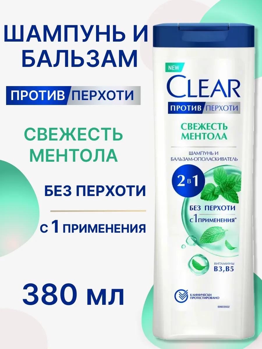 Шампунь и бальзам-ополаскиватель Clear против перхоти 2в1 Ментол мягко и эффективно очищает кожу головы, поэтому его можно использовать ежедневно. Удаляет видимую перхоть при регулярном использовании.