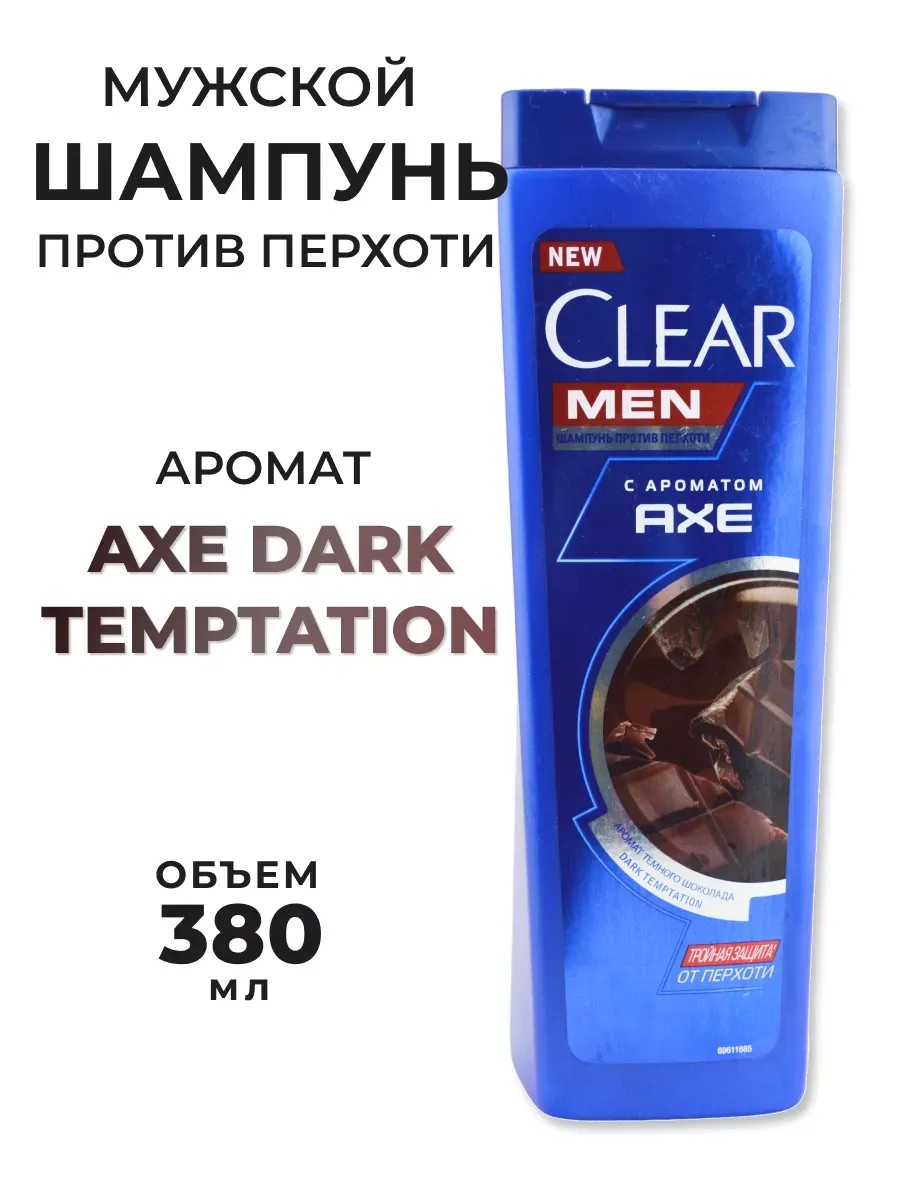 Clear Men шампунь против перхоти с ароматом AXE - это эффективная борьба Clear с перхотью* и топовый аромат AXE Dark Temptation в одном флаконе! Он создан специально для активных парней, которым важно чувствовать себя уверенно в любой ситуации.Clear Men шампунь против перхоти с ароматом AXE - это:- тройная технология защиты от перхоти;- аромат от известного парфюмера.Формула Clear Men шампунь против перхоти с ароматом AXE борется с причиной появления перхоти, очищает кожу головы и усиливает ее защитные функции.Clear Men шампунь против перхоти с ароматом AXE Dark Temptation станет ароматной фишкой образа. В нем сочетаются все шоколадные оттенки: нежный белый, теплый молочный и насыщенный горький. Подходит для ежедневного применения.*Удаляет видимую перхоть при регулярном использовании.Очищение кожи головы и волос, защита от перхоти, активация естественной защиты кожи головы.Энн Гoттлиб - парфюмер Calvin Klein, Dior, Elizabeth Arden, Victoria's Secret, AXE и дp.
