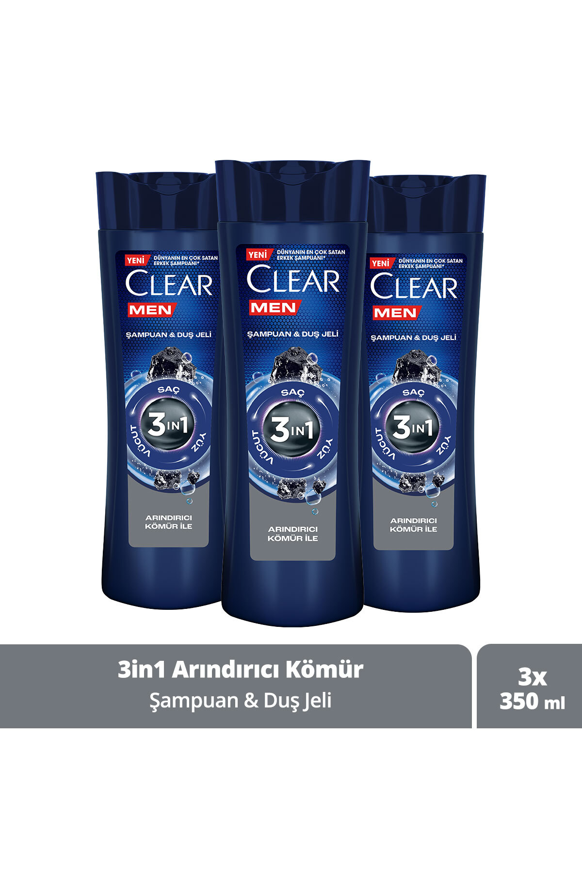 A brand new innovation from Clear! Clear Men 3 in 1 Shampoo Shower Gel Purifying Charcoal 350 ml offers triple effect, powerful care in a single bottle. Combining shampoo and shower gel in a single product, Clear Men 3 in 1 Shampoo Shower Gel Purifying Charcoal comes to provide cleansing and care for the whole body without dandruff concerns. Developed with Clear's 3-in-1 innovation, the men's shampoo has been developed 100 specifically for men. For those who need a quick and practical shower before going to work or school in the morning and before going to bed at the end of a tiring day, Clear Men 3 in 1 Shampoo Shower Gel Purifying Charcoal is exactly the product they are looking for. Developed specifically for men looking for a practical product that will meet more than one of their needs at a time, Clear Men 3 in 1 Shampoo Shower Gel Purifying Charcoal is suitable for use on hair, face and body. With Clear Men 3 in 1 Shampoo Shower Gel Purifying Charcoal, specially developed for men's scalp, face and body, it is now possible to have dandruff-free hair , clean skin and a fresh body in a single product. It deeply cleans the hair and body to purify dirt and oil from head to toe with the charcoal it contains. Providing a 3-in-1 effect on hair, face and body, Clear Men 3 in 1 Shampoo Shower Gel Purifying Charcoal cleans and care for the whole body without worrying about dandruff! Usage: Apply to wet hair, face and body. Repeat this process if needed. Use every day for best results. Avoid contact with eyes. In case of contact with eyes, rinse with plenty of water. Helps prevent visible dandruff, itching and oiliness due to dandruff when used regularly. Ingredients: Aqua, Sodium Laureth Sulfate, Cocamidopropyl Betaine, Sodium Chloride, Parfum, Glycerin, Sodium Benzoate, Citric Acid, Dimethiconol, Piroctone Olamine, Carbomer, Dimethicone, Menthol, Guar Hydroxypropyltrimonium Chloride, PPG-9, Mica, Helianthus Annuus (Sunflower) Seed Oil, Acrylamidopropyltrimonium Chloride Acrylamide Copolymer, Disodium EDTA, TEA-Dodecylbenzenesulfonate, TEA-Sulfate, Glycine, Niacinamide, Laureth-23, Poloxamer 407, Charcoal Powder, Phenoxyethanol, Laureth-4, PEG-4, Taurine, Xanthan Gum, Sodium Hydroxide, Limonene, Linalool, CI 77891. Visibly visible when used regularly helps prevent dandruff, dandruff-related itching and oiliness.