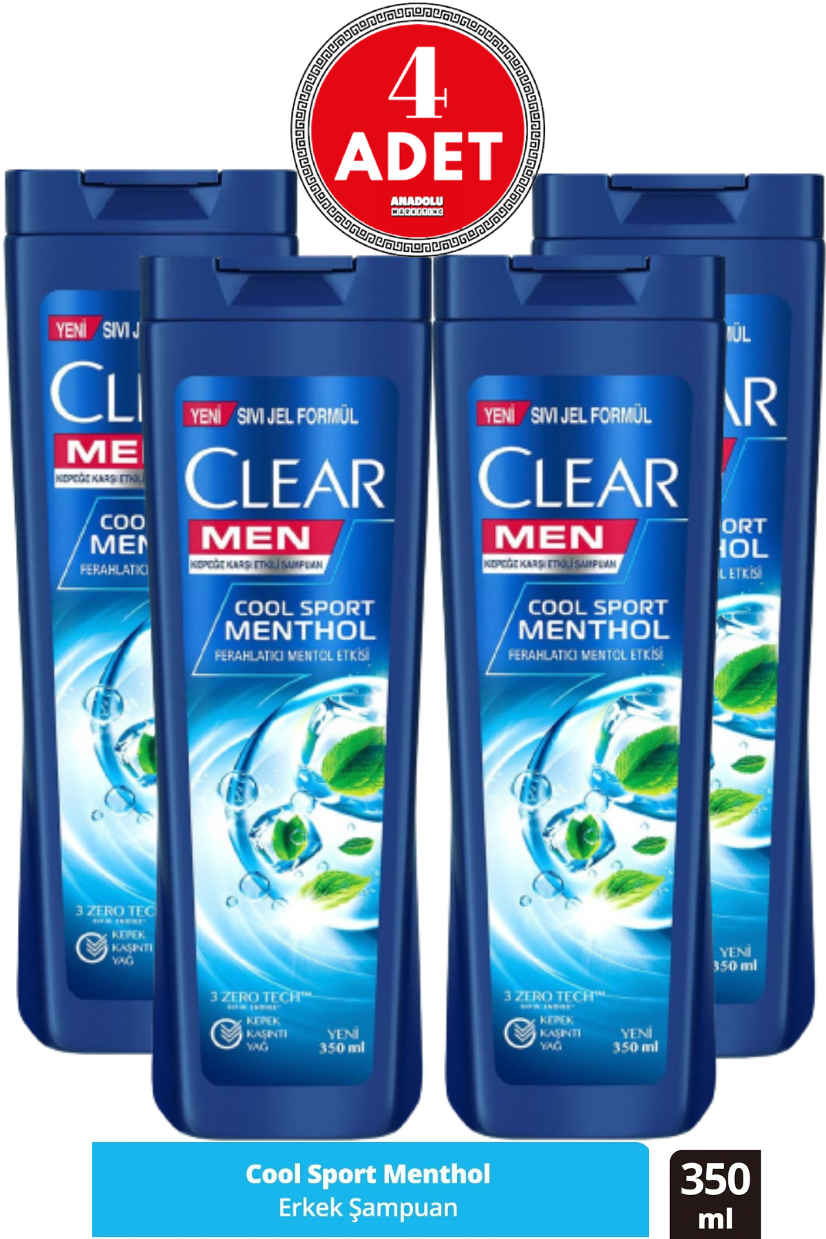 Clear Men Anti-Dandruff Shampoo Cool Sport Menthol Refreshing Menthol Effect 350 ml 4 Pieces