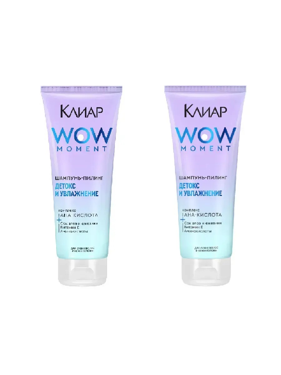 Переходите на новый уровень комфорта в уходе за волосами и кожей головы вместе с новинкой от Клиар! Шампунь-пилинг Детокс и увлажнение – это 100% перезагрузка кожи головы и x3 очищение: удаление себума, сухого шампуня, стайлинга. 3%' АНА-кислота в составе формулы мягко отшелушивает ороговевшие клетки и интенсивно очищает''. Сок алоэ и ежевики, аминокислоты и витамин Е увлажняют кожу головы и волосы'', защищая от сухости. Благодаря активным ингредиентам в составе и pH 4,5* шампунь отлично подойдет для сухой кожи головы и волос, а также для окрашенных волос. Продукт имеет сладкий аромат маракуйи, граната и содержит сок ежевики, приятен при нанесении. Используйте шампунь-пилинг Детокс и увлажнение Клиар 1-2 раза в неделю, в качестве альтернативы своему обычному шампуню. Просто нанесите его на влажные волосы и кожу головы, аккуратно помассируйте 2-3 минуты, хорошо смойте. После использования нанесите любимый бальзам на длину волос. В новой серии также представлены шампуни-пилинги: Баланс и восстановление для всех типов волос и кожи головы и Свежесть и обновление для жирных волос и кожи головы. Выбирайте подходящий шампунь именно для вашей кожи головы и волос и наслаждайтесь чистыми и ухоженными волосами. Именно комплексный подход, который включает в себя заботу о коже головы и волосах позволяет получить видимый эффект. ' в составе очищающего комплекса (молочная кислота, поверхностно-активное вещество). '' действие в сочетании с активными ингредиентами. * среднее значение pH. В комплекте 2 штуки.