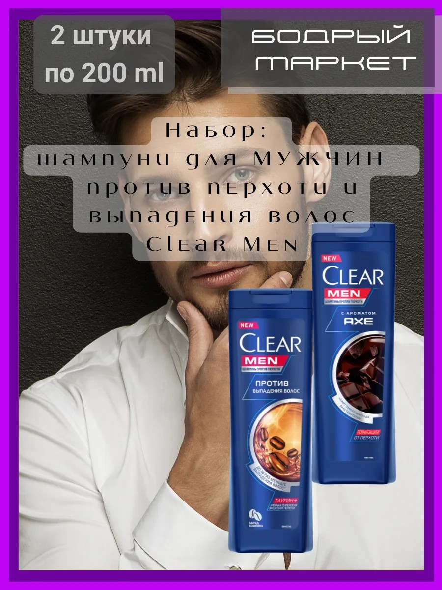 clear Набор: шампуни для МУЖЧИН против перхоти и выпадения волос 2 шт. по 200 мл.
