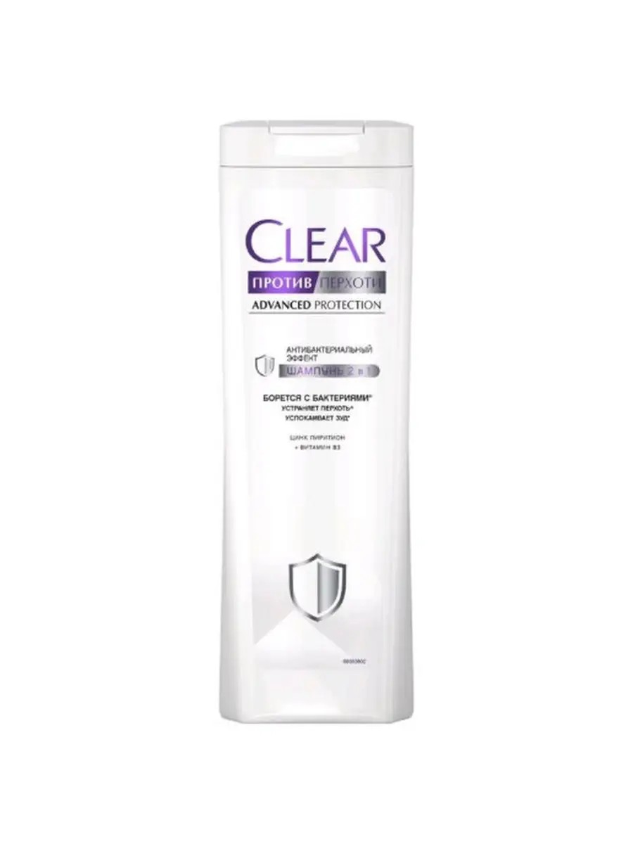 CLEAR Шампунь 2 в 1 Антибактериальный эффект, 380 мл.На волосах оседают пыль, грязь и бактерии, как и на руках. Мытье волос - очень важно для поддержания гигиены кожи головы и волос. Clear - эксперт в борьбе с перхотью и микробами. Новый Clear - это активный шампунь от перхоти с антибактериальным эффектом. Мощная формула 2 в 1 содержит активную концентрацию Цинка Пиритиона, а также витамин B3 и Аминокислоты: Устраняет перхоть Борется с бактериями Снимает зуд и шелушение кожи головы Шампунь Clear не только эффективно борется с бактериями, но и интенсивно питает кожу головы и волосы, оставляя напитанными, без зуда. Продукт 100%. ДЕЙСТВИТЕЛЬНО ЗАЩИЩАЕТ ОТ ПЕРХОТИ и дарит роскошные волосы. Технология тройной защиты от перхоти CLEAR разработана так, чтобы предотвратить повторное появление перхоти и обеспечить волосам питание и увлажнение.
