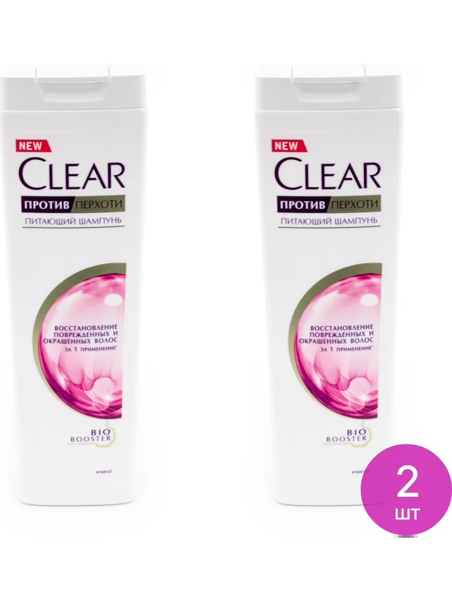 Clear / Клеар Шампунь от перхоти с витамином В3 и аминокислотами, восстановление для окрашенных волос 400мл / косметика уход. Комплект состоит из 2 шт. Цена за комплект. Жидкий шампунь от перхоти Clear благодаря входящим в состав натуральным ингредиентам заботится о волосах, укрепляет и питает их, придает волосам ухоженный, здоровый вид. Его цель: яркий здоровый цвет волос, устранение сухости и ломкости. Женский шампунь против перхоти Clear Восстановление поврежденных и окрашенных волос создан с учетом особенностей женской кожи головы: регулярные окрашивания и смена имиджа сушат кожу, способствуя появлению перхоти, истончению, хрупкости и ломкости волос. Шампунь Clear Восстановление поврежденных и окрашенных волос обладает комплексным действием: очищает, питает и увлажняет, избавляет от перхоти и эффективно восстанавливает волосы, возвращая им утраченную силу, блеск и гладкость. Шампунь для окрашенных волос Clear Восстановление был разработан экспертами Clear с учетом строения кожи головы и с технологией тройной защиты против перхоти*. Он содержит не только защищающий от перхоти цинк пиритион, но и обогащен витамином В3 и аминокислотами. Шампунь от перхоти с глицином, глицерином и аргинином питает и активизирует естественные защитные силы кожи головы. Шампунь без парабенов Clear Восстановление против перхоти для окрашенных волос позволяет совместить уход за волосами с наслаждением изысканным ароматом. Его парфюмерная композиция построена на сплетении фруктовых и ягодных нот, в которых соседствуют фиалка и красная смородина, роза и малина, ежевика и жасмин. Даже после смывания шампунь для волос оставляет стойкий чувственный шлейф, где играет белый мускус и утонченно-сладкая ваниль. шампунь для волос женский / шампунь от выпадения волос для женщин.