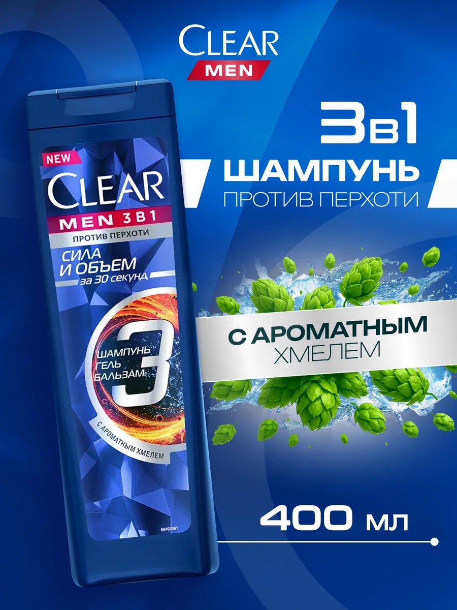 clear Шампунь и бальзам 3в1 мужской Сила и объем, 400 мл