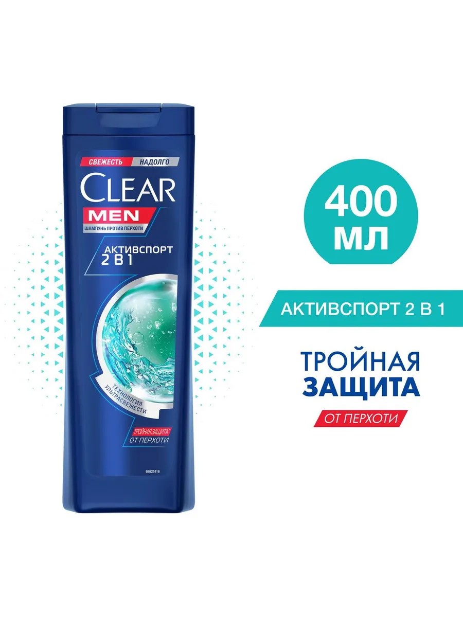 Позаботьтесь о красоте своих волос и здоровье кожи головы с шампунем и бальзамом-ополаскивателем от Clear 2 в 1 Активспорт.