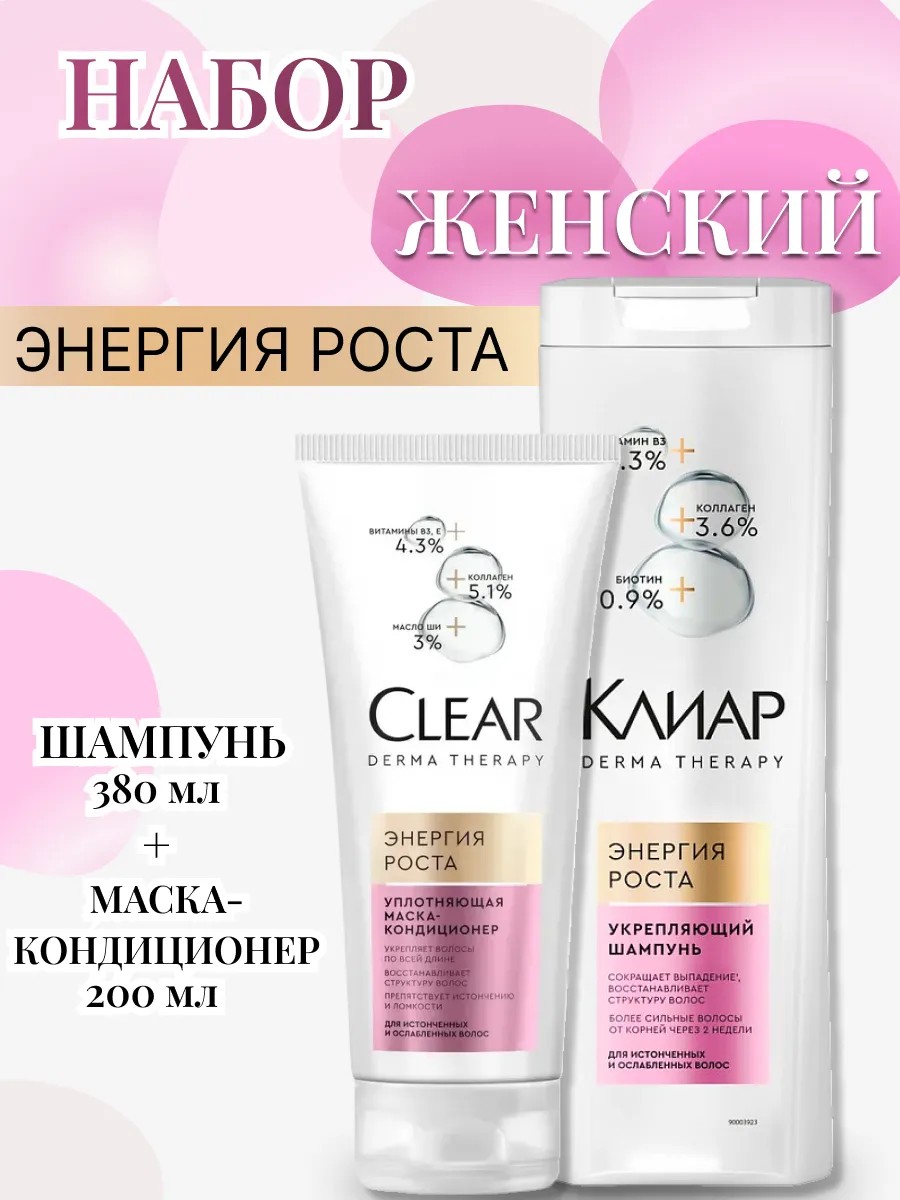 Подарочный набор "Энергия роста" от clear - это идеальный выбор для тех, кто заботится о красоте и здоровье своих волос.