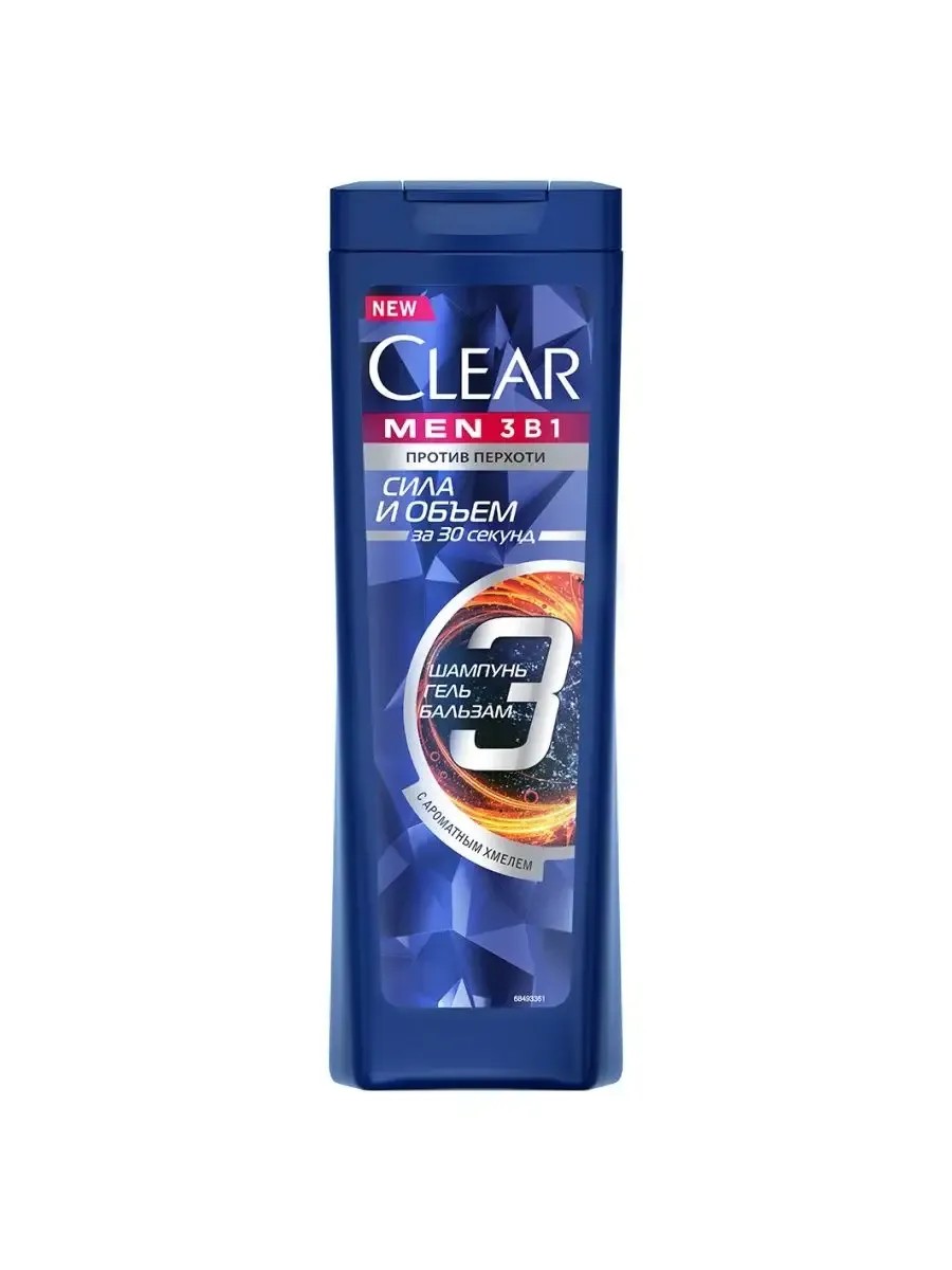 Clear Men Шампунь-бальзам, гель 3в1 Объем и Сила 400млШампунь-бальзам, гель для душа Объем и сила — это средство 3в1 — шампунь, бальзам и гель для душа, мгновенно смывающий грязь, жир и перхоть*. Пьянящий аромат хмеля подчеркивает мужественность и позволяет чувствовать себя уверенно в любой ситуации. Средство не только избавляет от перхоти, но и придает волосам блеск и объем от корней до самых кончиков.Шампунь-бальзам, гель для душа Объем и сила содержит инновационную** тройную технологию защиты от перхоти*. В его состав входят: цинк пиритион;глицерин;масло семян подсолнечника.Активные компоненты эффективно очищают и увлажняют кожу головы, активизируя ее естественный защитный слой. Благодаря этому мужской шампунь с хмелем устраняет видимую перхоть и препятствует ее повторному появлению*.Шампунь-бальзам, гель для душа Объем и сила с хмелем создан специально для активных мужчин, день которых расписан по минутам: всего за 30 секунд он позволяет ощутить свежесть и чистоту, которая сохранится на длительное время. Шампунь-бальзам, гель для душа Объем и сила для мужчин дарит волосам объем и силу — и никакой перхоти!Шампунь-бальзам, гель для душа Объем и сила предназначен для любого типа волос. Пользоваться им очень легко: нанесите небольшое количество средства на мокрые волосы и вотрите его в кожу мягкими массирующими движениями. Смойте и наслаждайтесь удивительной чистотой, блеском и свежим ароматом ваших волос. Подходит для ежедневного применения.*Удаляет видимую перхоть при регулярном использовании.**В линейке Clear.Способ применения:Нанести на влажные волосы, массирующими движениями втереть в кожу головы, смыть. Для достижения наилучших результатов используйте шампунь clear ежедневно.