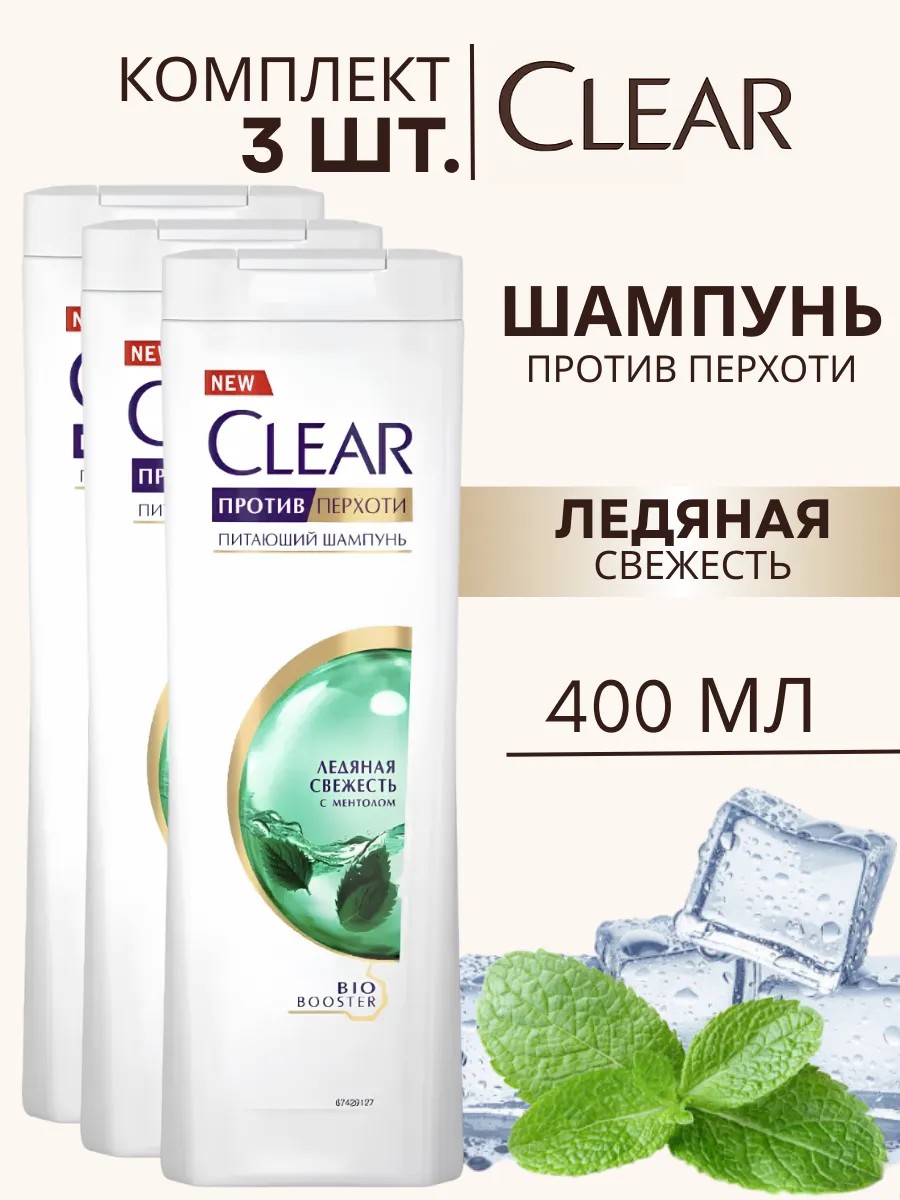 clear Шампунь мужской женский Ледяная свежесть 400 мл 3 шт.