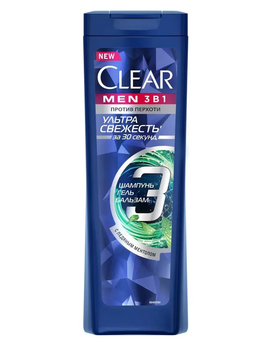 Clear, шампунь мужской Ультра свежесть 3в1, 400 мл. Шампунь-бальзам, гель для душа Ультра свежесть – это средство 3в1 – шампунь, бальзам и гель для душа, мгновенно смывающий грязь, жир и перхотьx. Бодрящий аромат ментола заряжает энергией и свежестью на весь день, подчеркивает мужественность и позволяет чувствовать себя уверенно в любой ситуации. Активные компоненты эффективно очищают и увлажняют кожу головы. Благодаря этому шампунь-бальзам, гель для душа Ультра свежесть с ментолом устраняет видимую перхоть и препятствует ее повторному появлению. Шампунь-бальзам, гель для душа Ультра свежесть создан специально для активных мужчин, день которых расписан по минутам: всего за 30 секунд он позволяет ощутить свежесть и чистоту, которая сохранится на длительное время.