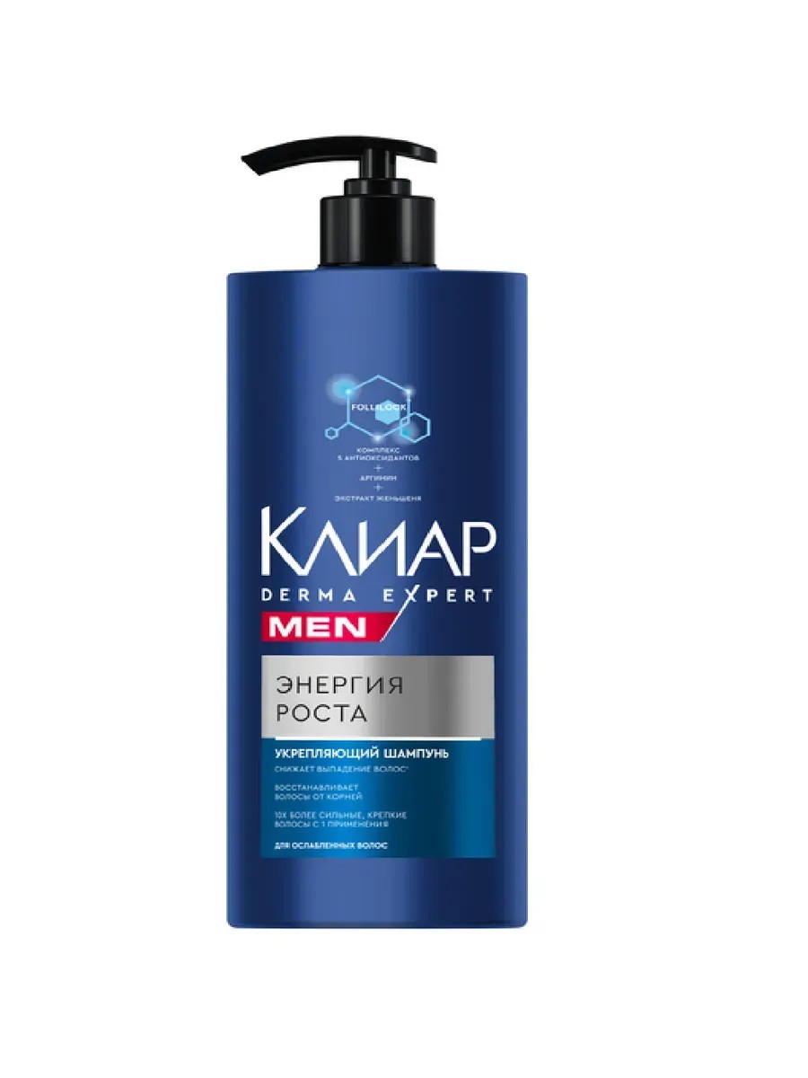 Clear Men Derma Expert, Шампунь укрепляющий Энергия роста, 1л. С комплексом из 5 антиоксидантов. аргинином и экстрактом женьшеня в новом увеличенном формате. Шампунь разработан специально для ослабленных волос и обеспечивает заметный результат: 10Х более сильные и крепкие волосы с первого применения! Наполните волосы жизненной силой вместе с шампунем мужским Клиар Men Derma Expert Энергия роста: Средство легко взбивается в пышную пену и активно очищает волосы и кожу головы. Формула шампуня против выпадения волос питает кожи головы, укрепляет волосы от корней, восстанавливает их структуру и уменьшает выпадение. Шампунь восстанавливающий для волос обладает приятным ароматом и оставляет ощущение свежести.
