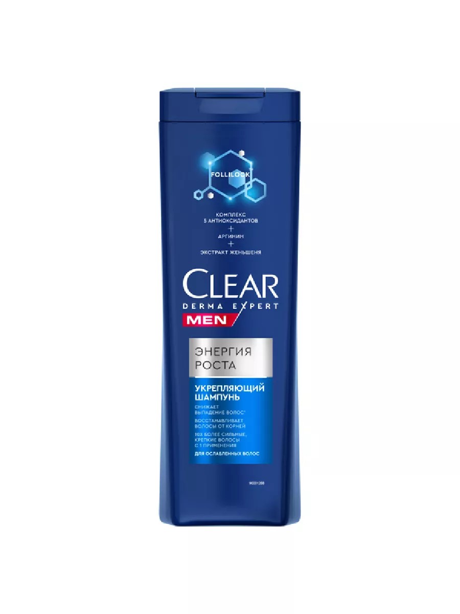 CLEAR Men Derma Expert Strengthening Shampoo, 380 ml. For weakened hair, try the strengthening shampoo, Men Derma Expert Growth Energy, designed specifically for men's scalps. This shampoo contains a complex of 5 antioxidants, arginine, and ginseng extract, which, together with other active ingredients, make hair 10 times stronger from the first use.