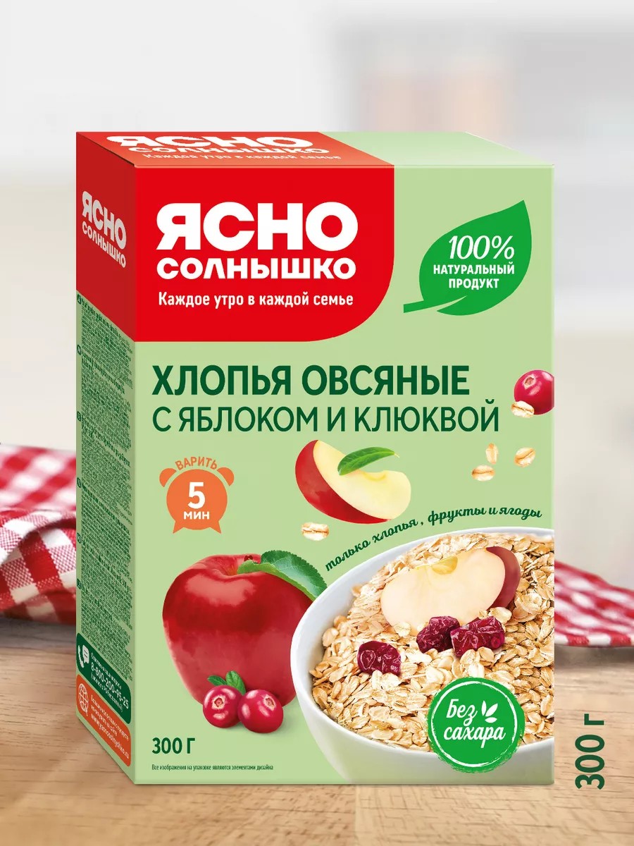 Ясно Солнышко Хлопья овсяные с клюквой и яблоком диетические 300 г