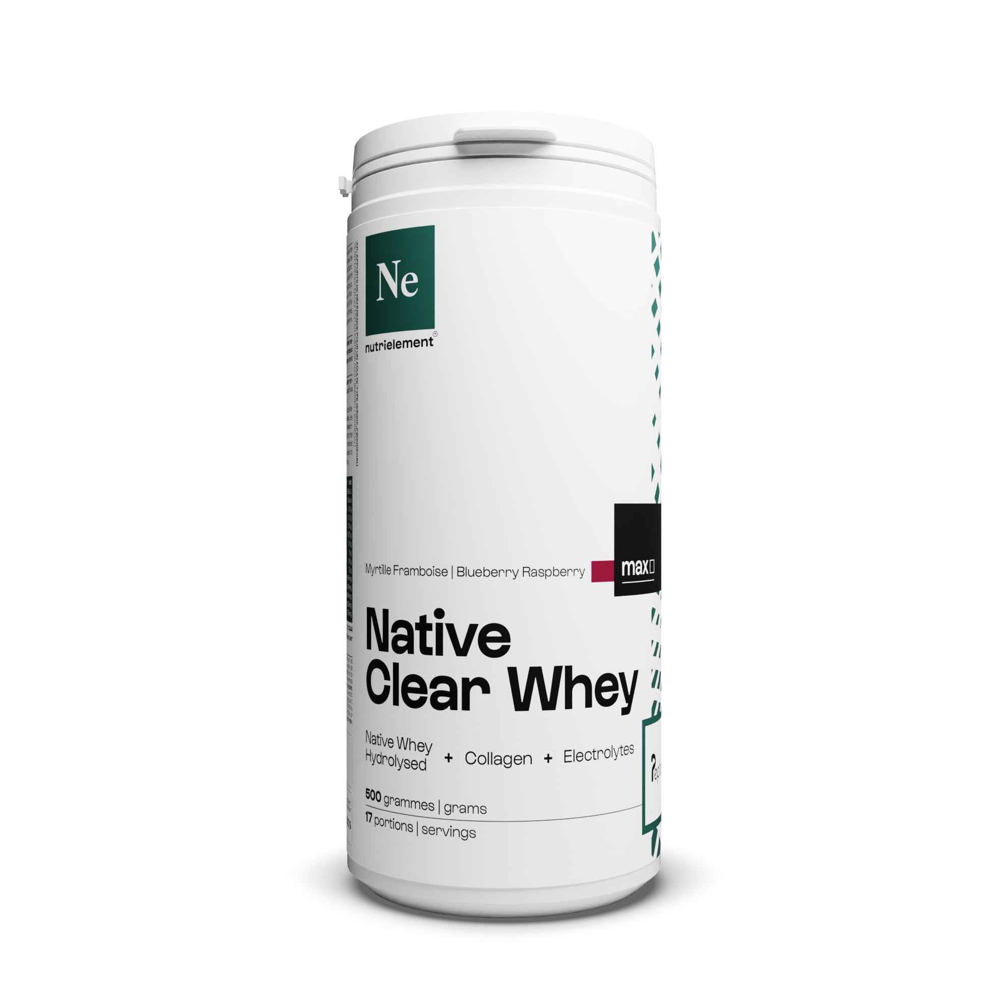 Clear whey 100% Native - 500 gr - Myrtille Framboise - Exculsivit mondiale : Whey Hydrolys e Native + Collag ne bovin Peptan + lectrolytes - Sport et Sant - Nutrielement | By Nutrimuscle