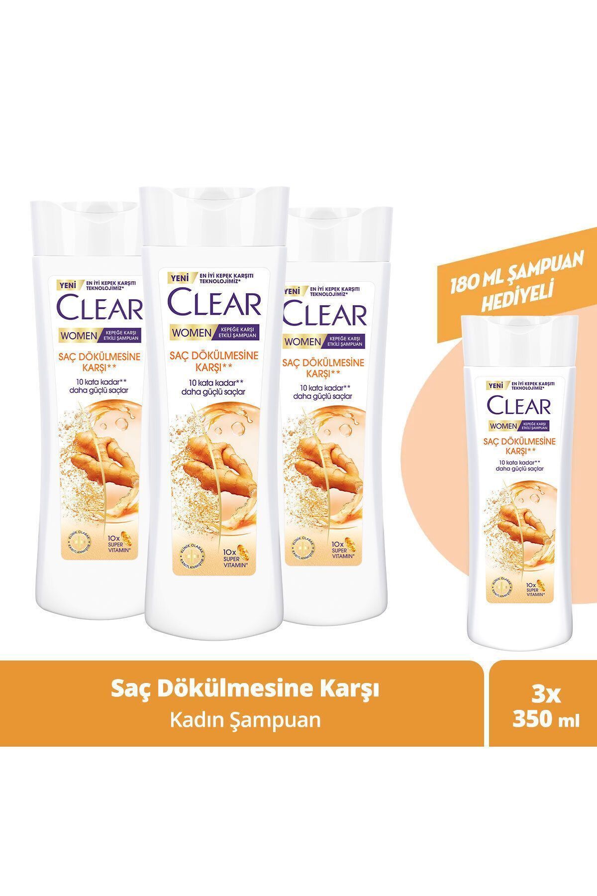 Clear Women Saç Dökülmesine Karsi Kepege Karsi Etkili Sampuan'in yenilikçi ve klinik olarak kanitlanmis kepek karsiti formülüyle kepek sorununu gidermek her zamankinden daha kolay. Clear'in simdiye kadar gelistirdigi en iyi kepek karsiti teknoloji ile hazirlanan bu sampuan, saçinizda kepege karsi 100 koruma saglar ve 10 kata kadar daha az dökülen, güçlü ve dolgun görünen saçlara kavusmanizi saglar. Clear, saç derisinde olusan kepek sorununa karsi bilimsel bir yaklasim benimsiyor. Bastan asagi yenilenen Clear, saçiniz için mükemmel bir saç bakim deneyimi sunuyor. Clear Saç Dökülmesine Karsi Kepege Karsi Etkili Sampuan, zencefil özü içeren canlandirici formülüyle, saçlarinizin daha canli gözükmesini saglar. Clear Women Saç Dökülmesine Karsi Kepege Karsi Etkili Sampuan'in özel formülünde, saç derisini güçlendirici 10 kat niasinamid içeren formüle sahiptir. Cilt bakim ürünlerinden ilham alinarak içerigine eklenen Niasinamid sayesinde daha güçlü saç derisine sahip olmanizi saglar. Clear Women Saç Dökülmesine Karsi Kepege Karsi Etkili Sampuan, saçiniza ve saç derinize gereken özeni göstererek kepege karsi etkili koruma saglar. Saç bakiminda yeni bir dönem baslatan Clear ile tanisin, kepeksiz ve 10 kata kadar daha az dökülen saçlarin keyfini çikarin. Clear'in önceki teknolojisi ile kiyaslandiginda Kopmaya bagli saç dökülmesi, kremsiz sampuan ile karsilastirildiginda Düzenli kullanildiginda gözle görünür kepegi önlemeye yardimci olur. Kullanim: Islak saç ve saç derisine uygulayin, saç derisine masaj yapin ve durulayin. En iyi sonucu almak için her gün kullanin. Gözle temas halinde bol suyla durulayin. Dogrudan günes isigindan uzak, serin bir yerde saklayin. Içindekiler: Aqua, Sodium Laureth Sulfate, Cocamidopropyl Betaine, Dimethiconol, Sodium Chloride, Dimethicone, Parfum, Sodium Benzoate, Piroctone Olamine, Citric Acid, Carbomer, Guar Hydroxypropyltrimonium Chloride, Sodium Hydroxide, Glycerin, Niacinamide, TEA-Dodecylbenzenesulfonate, TEA-Sulfate, Mica, Disodium EDTA, Acrylamidopropyltrimonium Chloride Acrylamide Copolymer, Laureth-23, Poloxamer 407, Phenoxyethanol, Helianthus Annuus (Sunflower) Seed Oil, Laureth-4, PPG-9, Glycine, PEG-4, Xanthan Gum, Butylene Glycol, Zingiber Officinale (Ginger) Root Extract, Alpha-Isomethyl Ionone, Benzyl Alcohol, Benzyl Salicylate, Coumarin, Hexyl Cinnamal, Limonene, Linalool, Cl 77891.