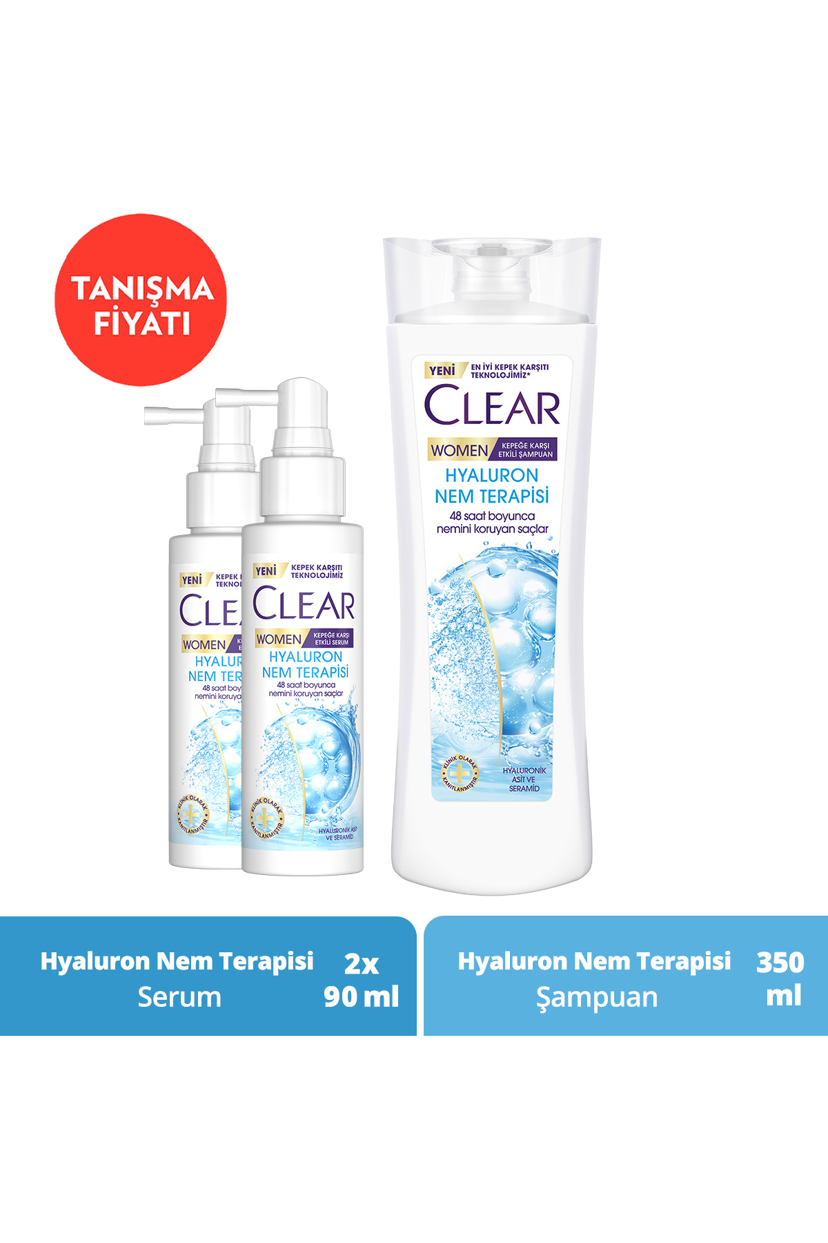 Clear Women Kepege Karsi Etkili Saç Bakim Sampuani Hyaluron Nem Terapisi 350 ml Clear Women Hyaluron Nem Terapisi Sampuan, saçlarinizi ve saç derinizi nemlendirmek için özel olarak tasarlanmistir. Hacimsiz ve kuru saçlarin en önemli nedeni nemini kaybetmis saç derisidir. Yeni Clear Women Hyaluron Nem Terapisi Sampuan, içerigindeki hyaluronik asit ve seramid ile kuru saç derisine nemi hapseder. Kuru saç derinizin günlük kaybettigi nemi geri kazandirir ve 48 saat boyunca nemini koruyan 2 kat dolgun saçlara sahip olmanizi saglar. Clear'in en iyi kepek karsiti teknolojisiyle gelistirilen bu sampuan, saç ve saç derinizi nazikçe temizlerken ayni zamanda nemlendirir. Saçi agirlastirmayan, hafif-yapili Moisture-Lock teknolojisi sayesinde 4 kat daha fazla nem içeren saç derisine sahip olmanizi saglar. Saçlarinizi ve saç derinizi nemlendirirken, klinik olarak kanitlanmis formülüyle kepege karsi da 0 koruma saglar. Clear Women Hyaluron Nem Terapisi Sampuan'i dusta islak saç ve saç derinize masaj yaparak kullanabilirsiniz. Daha iyi sonuç elde etmek için her gün kullanilmasi önerilir. Saç bakim rutininizi daha etkili kilmak için dus sonrasi saçlariniza Clear Women Hyaluron Nem Terapisi Serum'u nemli ya da kuru saç derinize uygulayabilirsiniz. Bu iki asamali bakim rutini, saçlarinizin ve saç derinizin günlük nem ihtiyacini karsilar ve saçlarinizi dolgunlastirir. Nemini kaybetmis saç derisine nem kazandirmak ve dolgun saçlara sahip olmak için siz de Clear Women Hyaluron Nem Terapisi Sampuan'i tercih edin, bakimli ve dolgun saçlarin keyfini çikarin. Clear'in önceki teknolojisi ile kiyaslandiginda. Düzenli kullanimda gözle görünür kepegi önlemeye yardimci olur. 4 haftalik düzenli kullanim sonrasi, standart sampuan ile yikanmis saç derisine kiyasla. 4 haftalik düzenli kullanim sonucu. Sebum uygulanmis saç ile kiyaslandiginda. Içindekiler: Aqua, Sodium Laureth Sulfate, Cocamidopropyl Betaine, Dimethiconol, Sodium Chloride, Dimethicone, Parfum, Sodium Benzoate, Citric Acid, Piroctone Olamine, Carbomer, Guar Hydroxypropyltrimonium Chloride, Niacinamide, Glycerin, TEA-Dodecylbenzenesulfonate, TEA-Sulfate, Mica, Disodium EDTA, Acrylamidopropyltrimonium Chloride Acrylamide Copolymer, Laureth-23, Poloxamer 407, Phenoxyethanol, Helianthus Annuus (Sunflower) Seed Oil, Laureth-4, PPG-9, Glycine, PEG-4, Xanthan Gum, Sodium Hydroxide, Ceramide NG, Hydrolyzed Hyaluronic Acid, Citronellol, Hexyl Cinnamal, Linalool, Cl 77891. Clear Women Kepege Karsi Etkili Saç Bakim Serumu Hyaluron Nem Terapisi 350 ml Clear Women Hyaluron Nem Terapisi Serum, saç derinizi nemlendirmek için özel olarak tasarlanmistir. Hacimsiz ve kuru saçlarin en önemli nedeni nemini kaybetmis saç derisidir. Yeni Clear Women Hyaluron Nem Terapisi Serum, içerigindeki hyaluronik asit ve seramid ile kuru saç derisine nemi hapseder. Kuru saç derinizin günlük kaybettigi nemi geri kazandirir ve 48 saat boyunca nemini koruyan 2.5 kat dolgun saçlara sahip olmanizi saglar. Clear'in kepek karsiti teknolojisiyle gelistirilen bu serum, saçi agirlastirmayan, hafif-yapili Moisture-Lock teknolojisi sayesinde 4 kat daha fazla nem içeren saç derisine sahip olmanizi saglar. Saç derinizi nemlendirirken, klinik olarak kanitlanmis formülüyle kepege karsi da 0 koruma saglar. En etkili sonuçlari elde etmek ve nemini kaybetmis saç derinizi nemlendirmek için iki adimli bakim rutinini uygulamaniz tavsiye edilir. Ilk olarak Clear Women Hyaluron Nem Terapisi Sampuan ile dusta saçlarinizi nazikçe temizleyin ve ardindan dus sonrasi nemli ya da kuru saç derisine Clear Women Hyaluron Nem Terapisi Serum'u püskürtün, parmaklarinizla saç derisine hafifçe masaj yaparak uygulayin. Etkili sonuç almak için haftada en az 3 kez kullanin. Durulama gerektirmez. Nemini kaybetmis saç derisine nem kazandirmak ve dolgun saçlara sahip olmak için siz de Clear Women Hyaluron Nem Terapisi Serum'u tercih edin, bakimli ve dolgun saçlarin keyfini çikarin. Düzenli kullanimda gözle görünür kepegi önlemeye yardimci olur. Sampuan ile beraber 4 haftalik düzenli kullanim sonrasi, standart serum ve sampuan uygulanmis saç derisine kiyasla. 4 haftalik düzenli kullanim sonrasi. Sebum uygulanmis saç ile kiyaslandiginda. Içindekiler: Alcohol Denat., Aqua, Polysorbate 20, Glycerin, Piroctone Olamine, Citric Acid, Parfum, Niacinamide, Trehalose, Tocopheryl Acetate, Sodium Hydroxide, Denatonium Benzoate, Ceramide NG, Hydrolyzed Hyaluronic Acid, Citronellol, Geraniol, Hexyl Cinnamal, Limonene, Linalool.