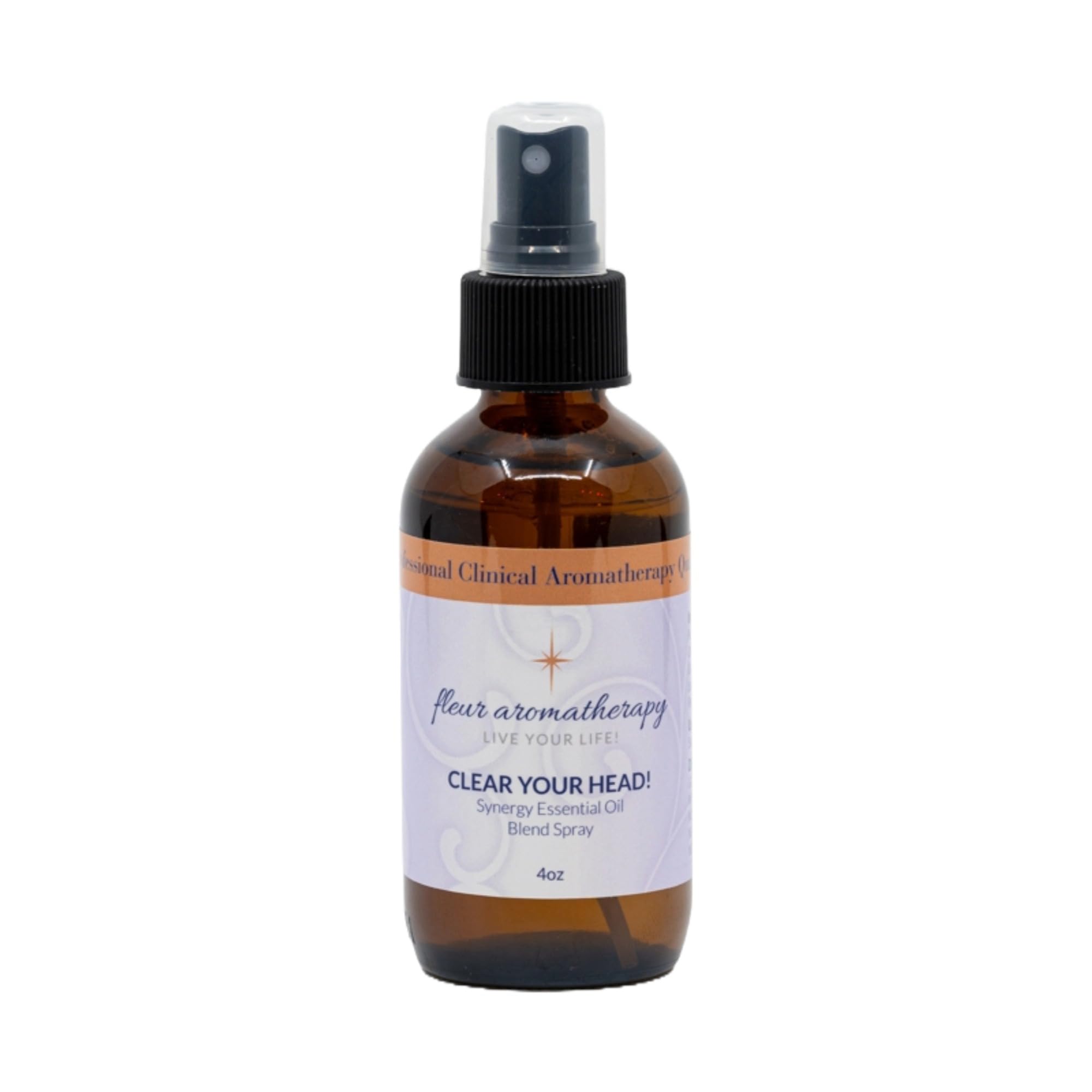 Soothe and refresh with Fleur Aromatherapy's Clear Your Head Synergistic Essential Oil Blend Spray. Featuring Roman Chamomile, Geranium, Lavender, and Peppermint essential oils, this cooling and refreshing blend is diluted to 6–8 in purified water for safe and versatile use. Simply mist onto your body, linens, yoga mat, or into the air for quick aromatherapy support wherever life takes you. Perfect for work, travel, or relaxation moments, Clear Your Head helps ease tension, supports emotional calm, and refreshes the senses throughout your day. Each oil is purity-tested and blended in small batches for professional aromatherapy quality. No Synthetics - No Pesticides - No Stretching - No Adulteration. Hand poured in the USA. FDA Disclaimer: This product has not been evaluated by the Food and Drug Administration. It is not intended to diagnose, treat, cure, or prevent any disease.Size: 4 oz Amber glass spray bottle with a fine mist sprayer for even and refreshing application. Professional Quality Safety: Purity-tested and hand poured in the USA. Professional aromatherapy quality. Woman and veteran owned business. For external use only. Avoid eyes and mucous membranes. If pregnant, nursing, under medical care, or taking medication, consult a professional before use. Keep out of reach of children and pets. Supports Soothing Refreshment: Designed to ease tension, support emotional calm, and refresh the senses throughout your day. Versatile Use: Mist over your face (eyes closed), body, linens, or workspace to create a cooling and refreshing environment that helps clear the mind and uplift the senses. Pre-Diluted Ready-to-Use Aromatherapy Spray: Expertly blended with 100 pure Roman Chamomile, Geranium, Lavender, and Peppermint essential oils in purified water for safe topical and air application.