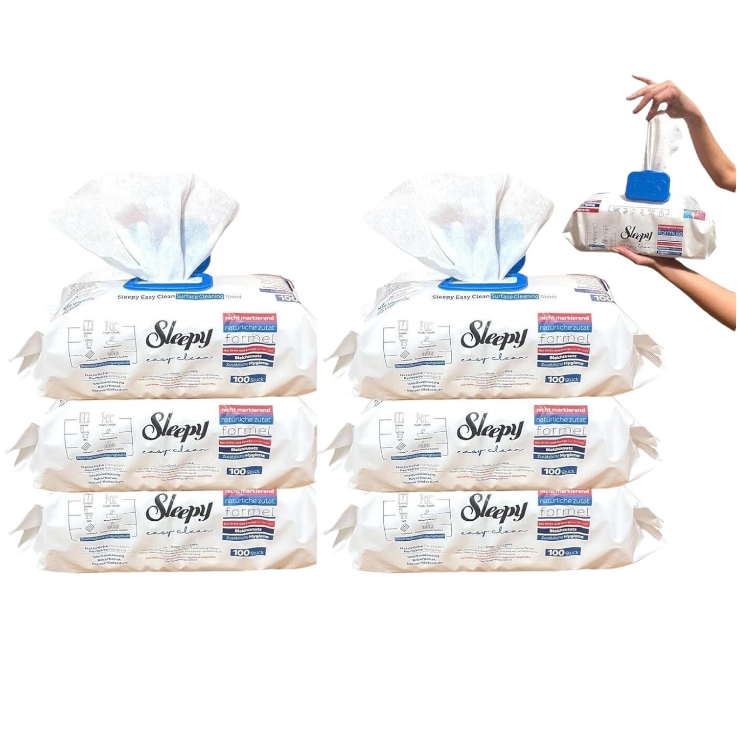Clearfee Set |Original Sleepy wet wipes Surface cleaning towels |100 XXL blues each |Cleaning towels disposable |Strongly large (6 pieces pale additive)