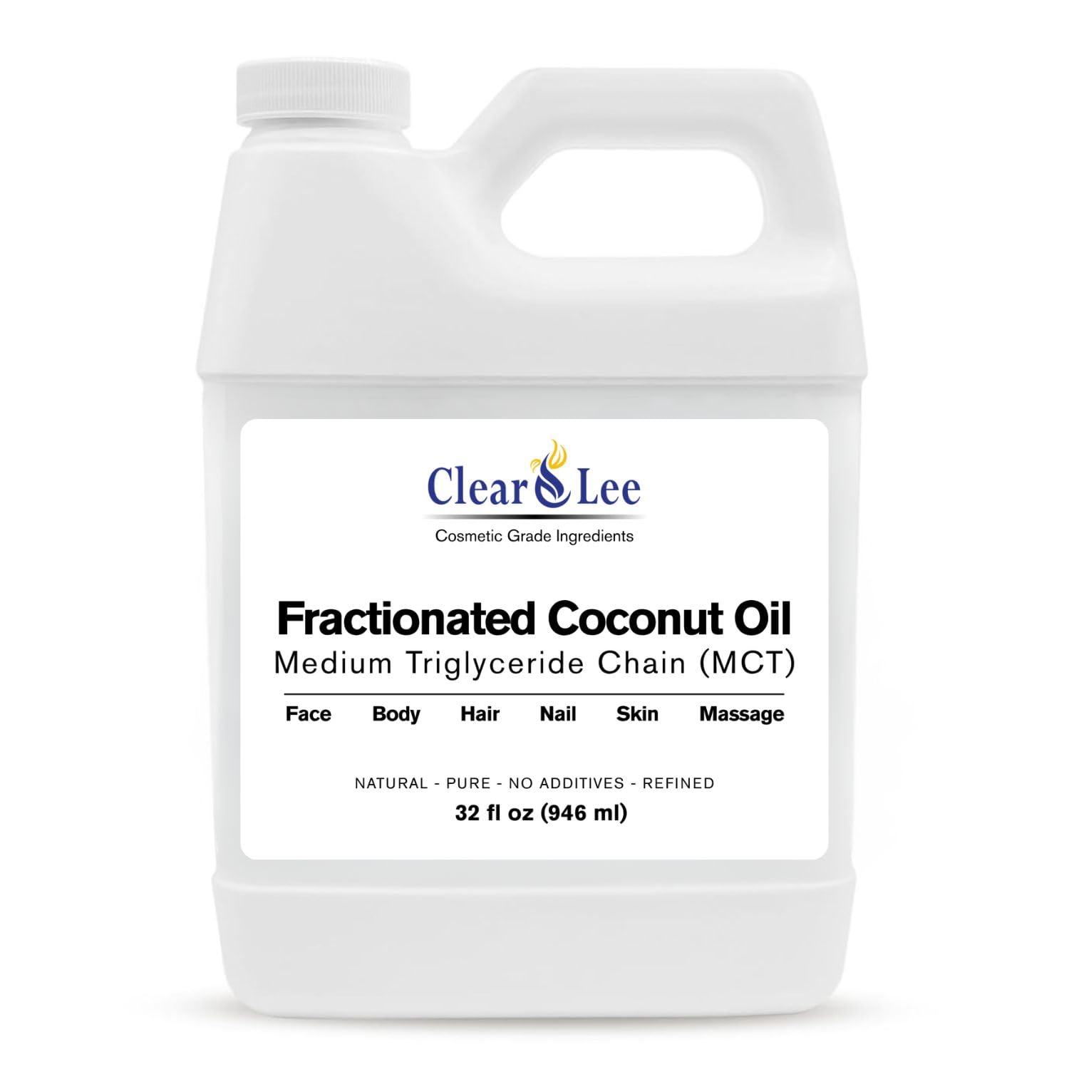 Elevate your skincare, haircare, and DIY routine with Clearlee's Fractionated Coconut Oil. Perfect as a natural moisturizer, massage oil, or carrier oil for essential oils, it's the clean beauty staple your body will thank you for. Bottled with care, our fractionated coconut oil is of cosmetic grade quality making it great for the whole body. As with all our ingredients, you can expect it to be pure without added chemicals, preservatives, or any other additives.PURE NATURAL - All our ingredients are carefully sourced bringing the world's best ingredients straight to your home. To ensure the best, our ingredients are sourced globally and packaged in the USA. DEEP MOISTURIZATION PROTECTION – Rich in Caprylic and Capric acids, our Fractionated Coconut Oil delivers intense hydration while forming a lightweight, non-greasy barrier that locks in moisture. Naturally packed with antioxidants, it supports scalp health, promotes hair growth, and enhances volume and shine. IDEAL FOR DIY COSMETICS AROMATHERAPY – Odorless and ultra-versatile, our Fractionated Coconut Oil MCT is a top carrier oil for blending essential oils and mixing with other carriers. Perfect for homemade soaps, serums, scrubs, conditioners, and moisturizers. Also excellent as a massage oil and for aromatherapy blends. LIGHTWEIGHT FAST-ABSORBING – Our Fractionated Coconut Oil is made by removing long-chain triglycerides, leaving only skin-friendly MCTs that stay liquid at room temperature. This ultra-light oil absorbs quickly, delivering deep hydration without clogging pores or leaving a greasy residue. COSMETIC GRADE QUALITY - Enjoy natural skin care with our luxurious premium spa quality oil. No additives, preservatives, or artificial ingredients - just pure and natural oil that is chemical free and safe for all skin and hair types making it a trusted ingredient in clean beauty and holistic skin care around the world. Great for skin, body, hair, and nails.