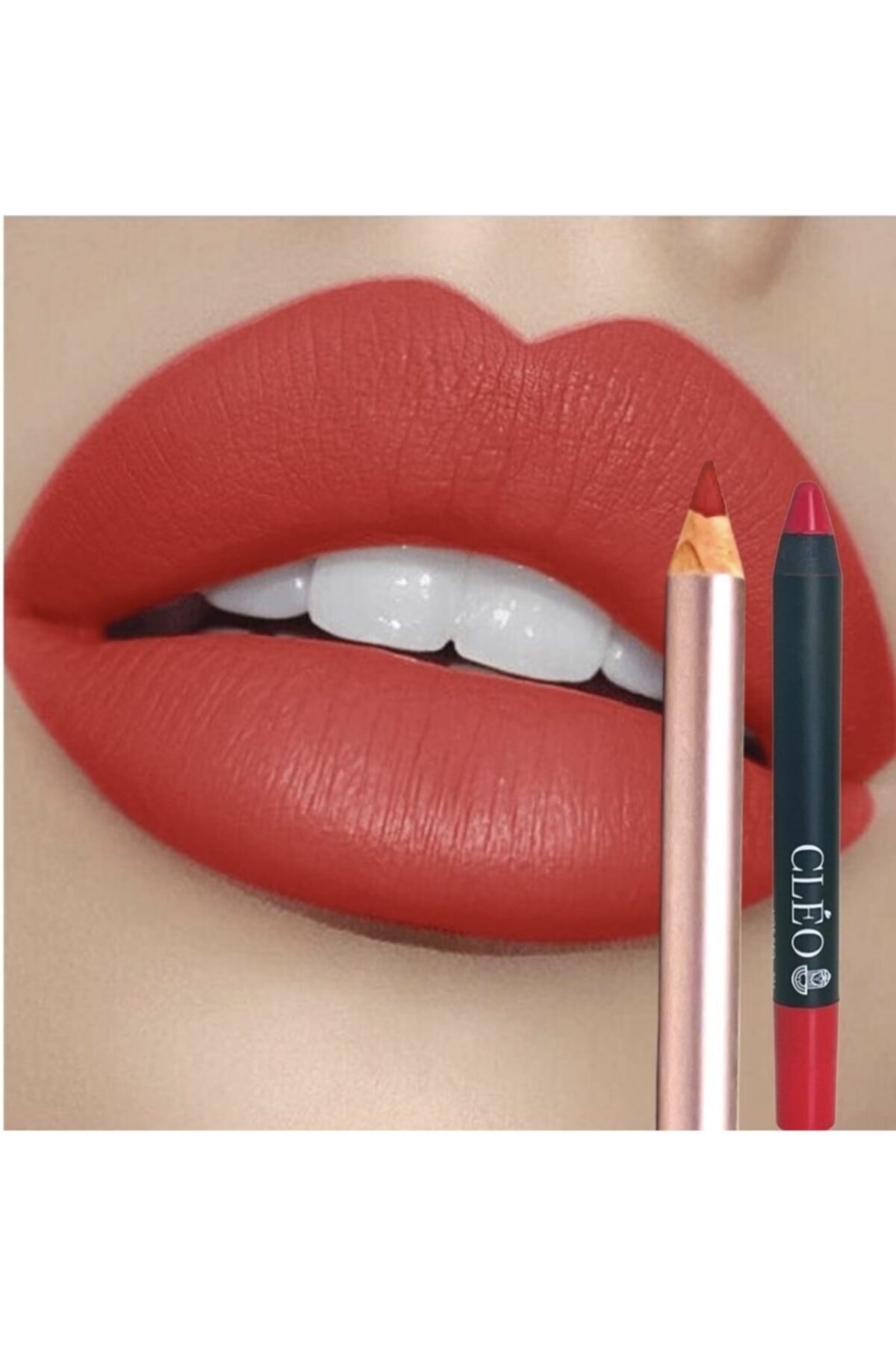 Cleo Cosmetics 2 in 1 Waterproof Matte Lipstick & Lip Liner (RED)