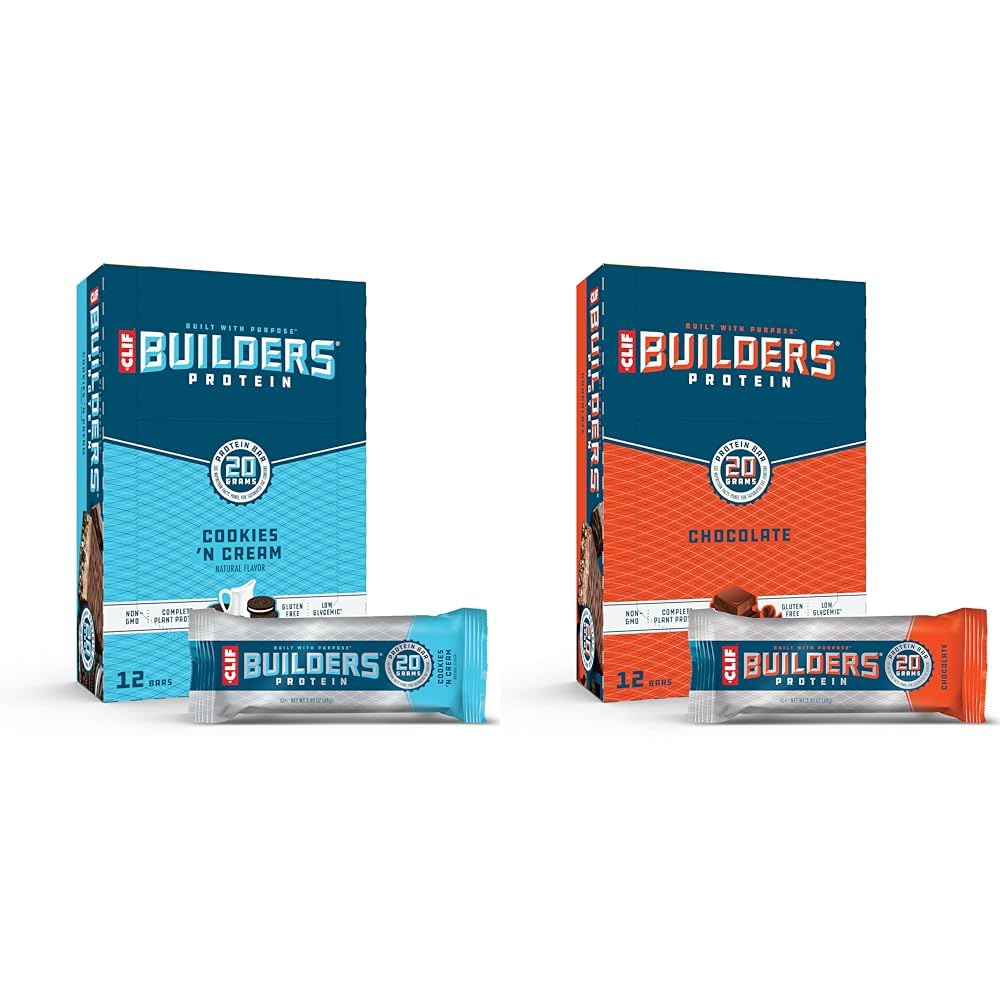 CLIFF Builders Protein Bars Bundle - Cookies 'n Cream & Chocolate Flavors - 20g Protein - 2.4 oz. (12 Count) Each