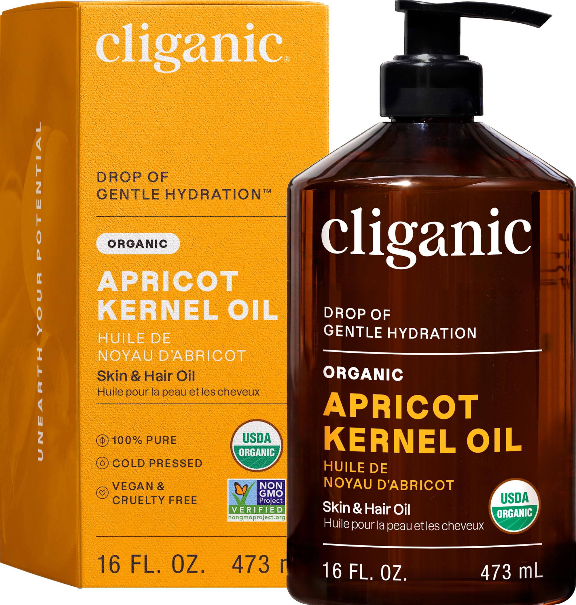 Cliganic Organic Apricot Oil 100% Pure (16oz) - For Skin Hair & Face | Natural Cold Pressed Unrefined 16 Fl Oz (Pack of 1)